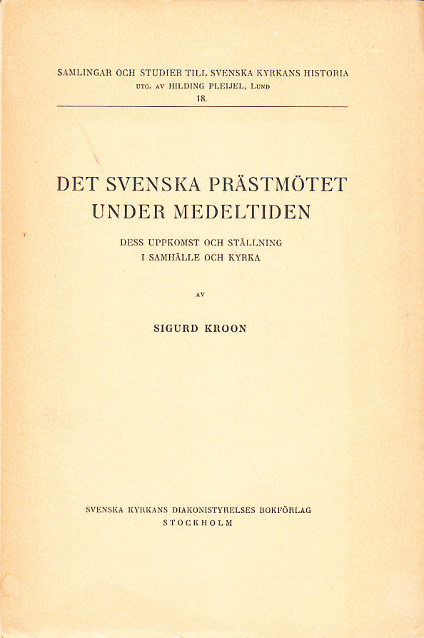 Det svenska prästmötet under medeltiden. Dess uppkomst och ställning i samhälle och kyrka. [Utg. av] Svenska kyrkans diakonistyrelses bokförlag.