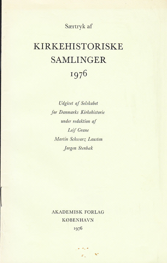 Särtryck ur ‘Kirkehhistoriske Samlinger 1976’.