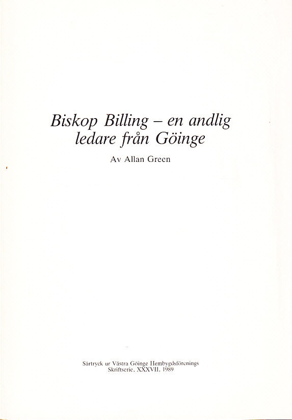 Biskop Billing - en andlig ledare från Göinge [= rubrik].