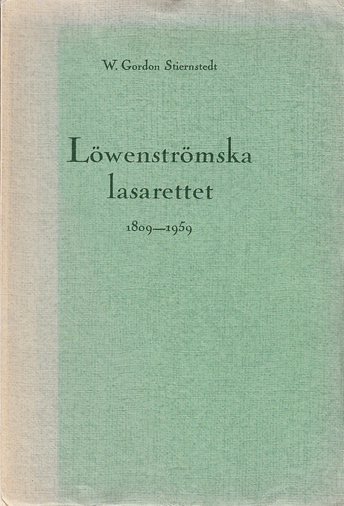 Omslagstitel ‘Löwenströmska lasarettet 1809-1959. Innehåll: Om bygden i äldsta tid; Lindöfamiljen; Den verklige Anckarström; Donationen; Omkring sjukjournalerna, främst åren 1810-1851; Under ‘Seraphimer Ordens Gillets’ direkta omvårdnad (1811-1825); Ett nytt administrativt skede (1825-1846); Mera om sjukjournalernas vittnesbörd (1851-1885); Ur den första protokollserien (1846-1877); Sjukjournalerna (1886-1889); Under Landstingets omvårdnad (177-1903); En sista inblick i journalerna (1889-1900); Anstalter vid sidan av det egentliga lasarettet; Människorna bakom gärningen (1877-1903); Lasarettet under det tjugonde seklet (1904- intill våra dagar); Persongalleriet avslutas; Vägen till det moderna sjukhuset; Avslutande reflektioner; Bilagor: Donationer till lasarettet; Förteckning å Direktionens nuvarande medlemmar samt å lasarettets läkare; Källhänvisningar; Personregister.