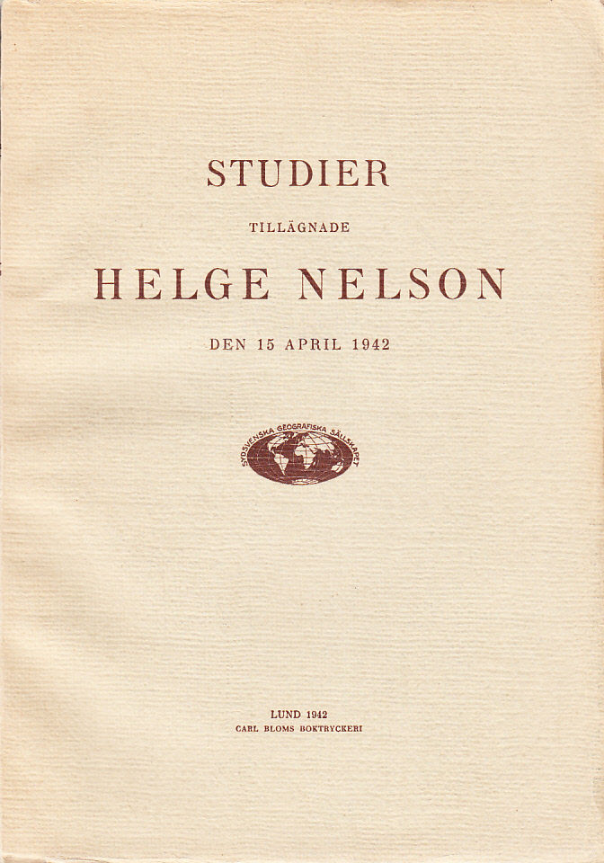 Lund, Carl Bloms Boktryckeri. 1942. 8:o. Frontespis, (12) ,575, (2) s., 4 kartbl., 3 bil. Trådhäftad med styvt tryckt grått pappersomslag. Delvis ouppskuret exemplar.