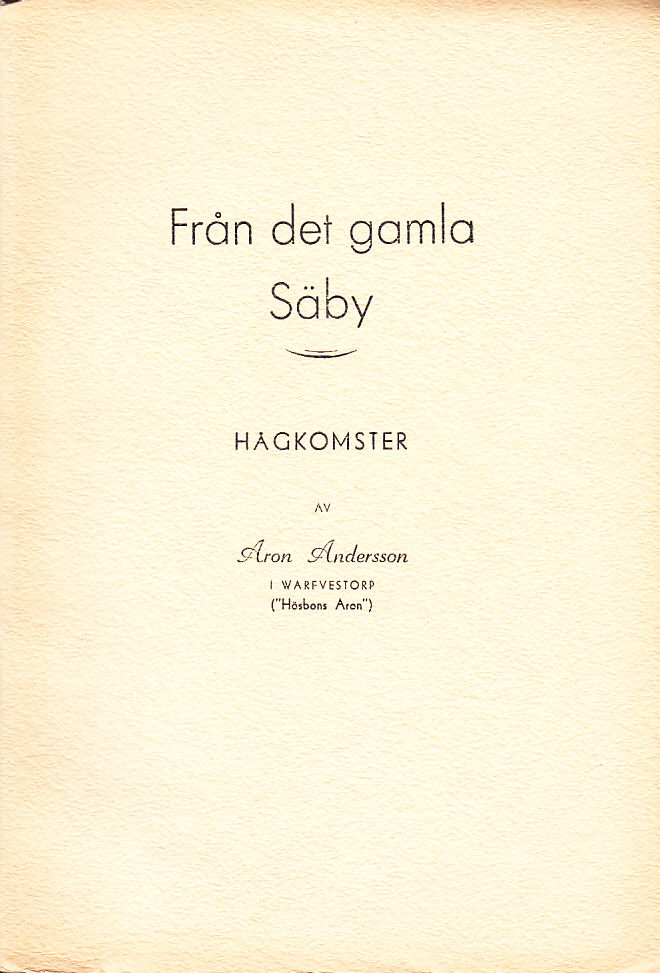 Från det gamla Säby. Hågkomster av Aron Andersson i Warfvestorp (‘Hösbons Aron’).