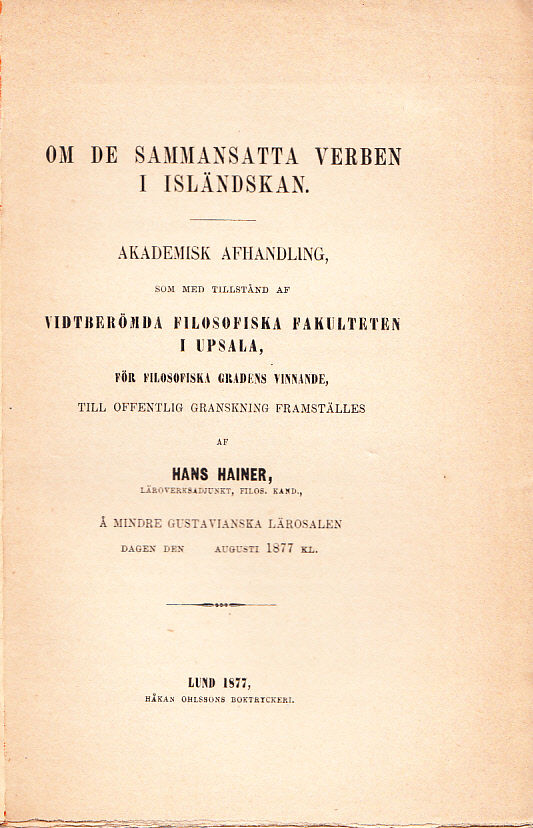 Om de sammansatta verben i isländskan. Akademisk afhandling ... af Hans Hainer ...