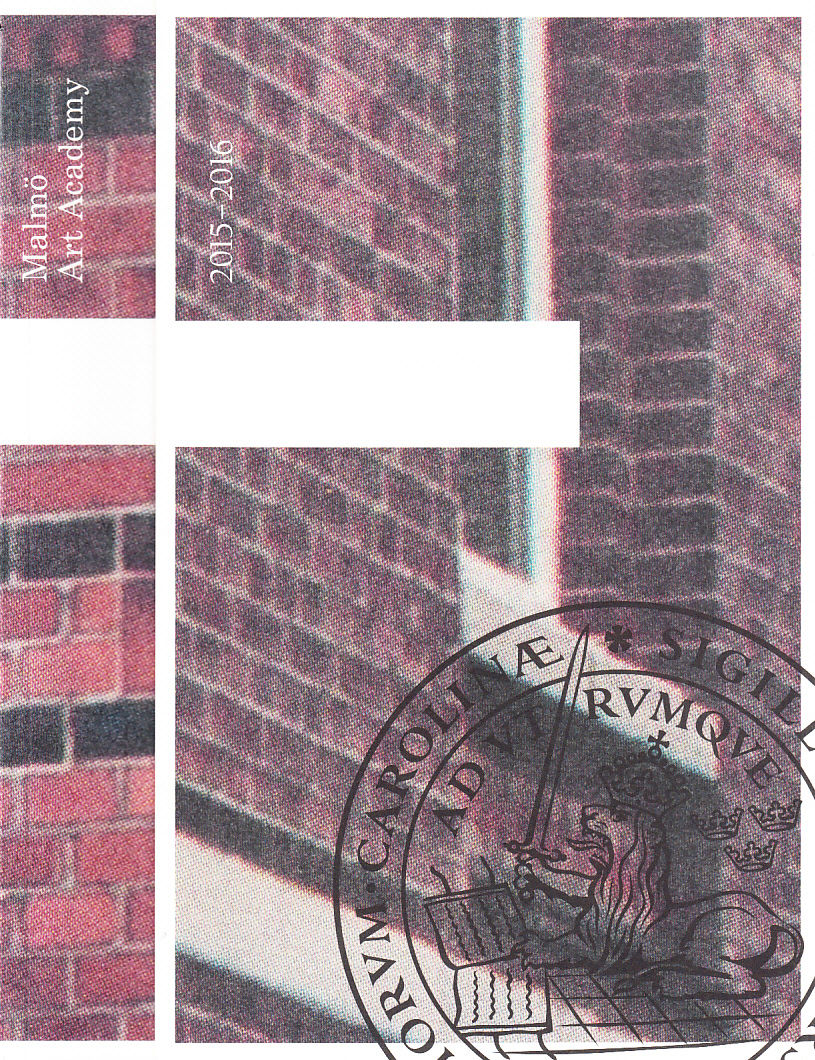 Engelsk text. Innehåll: Foreword; Masters of Fine Arts - Year 2; Bachelor of Fine Arts - Year 3; PhD Candidates; Faculty; About Malmö Art Academy; Programme Descriptions; Course Descriptions.