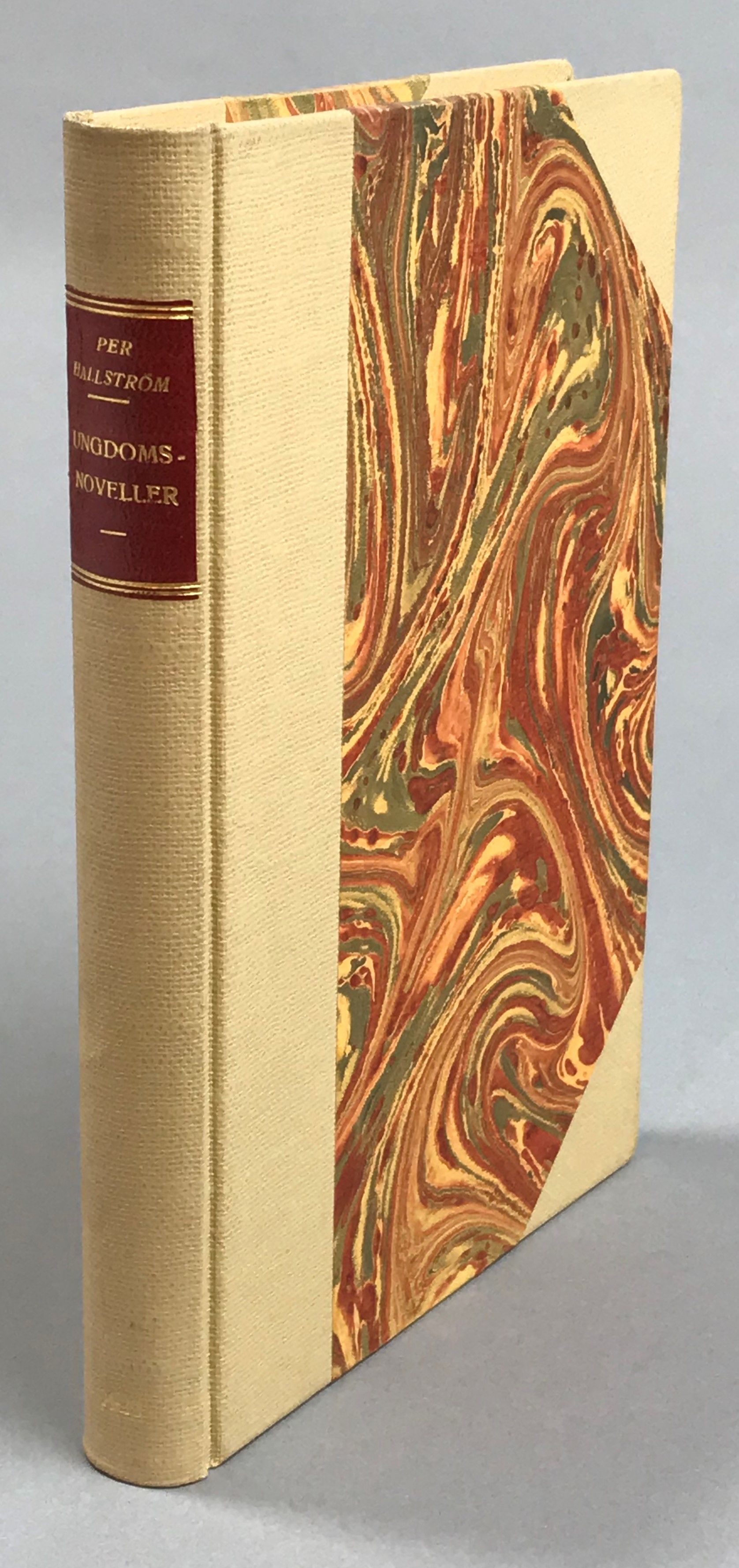 Helsingfors, Holger Schildts Tryckeri, 1923. 8:o. 291 s. Gediget halvklotband (osignerat men ev. Fröbergs, Linköping) med röd ryggtiteletikett, mönstrat pärmpapper. Främre omslag medbundet. Välhållet exemplar. Exlibris ‘Folke Holmström’ på främre pärmens insida samt densammes namnteckning ‘Folke Holmström, 1929’ på halvtitelbladet. Ur Folke Holmströms bibliotek.