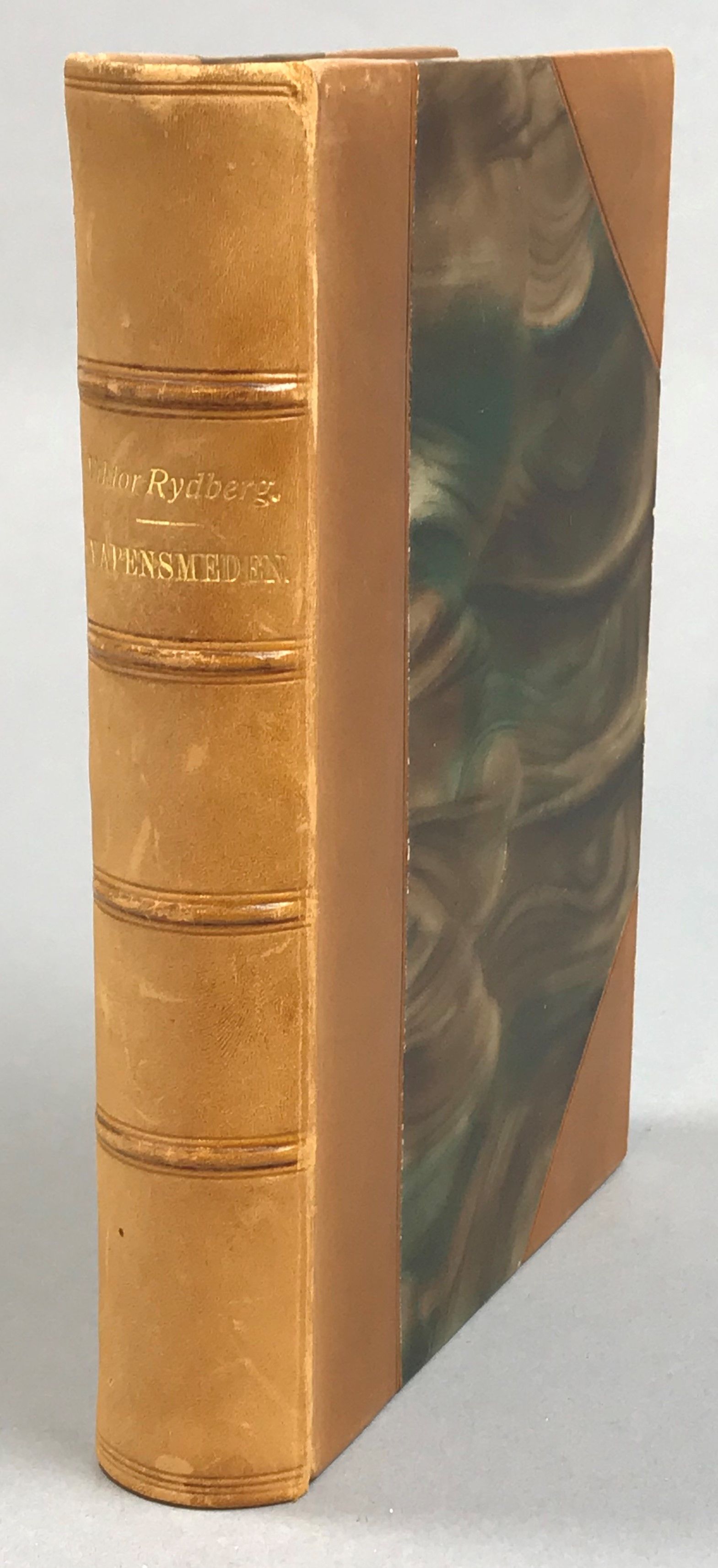 Göteborg, Göteborgs Handelstidnings Aktiebolags Tryckeri, 1891. 8:o. (10), 384 s. Ljusbrunt halvskinnband med fyra upphöjda bind, ryggtitel i guld, marmorerat pärmpapper, röda snitt. Fint exemplar. Aningen solblekt rygg. Namnteckningar ‘Signe Holmström’ resp. ‘Folke Holmström’ samt Exlibris ‘Folke Holmström’ på försättsbladet. Ur Folke Holmströms bibliotek.