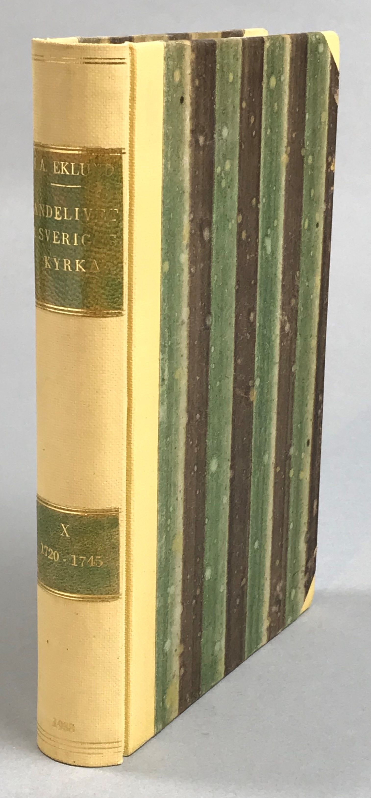 Uppsala, Ernst Westerbergs Boktryckeri A.-B., 1938. 8:o. Maskinskrivet gemensamt titelblad; 307, (2) s. Gediget halvklotband (osignerat men ev. Fröbergs, Linköping) med grön ryggtiteletikett, mönstrat pärmpapper. Samtliga (2) omslag medbundna. Välhållet exemplar. Något solblekt ryggtitel. Exlibris ‘Folke Holmström’ på främre pärmens insida. Ur Folke Holmströms bibliotek.