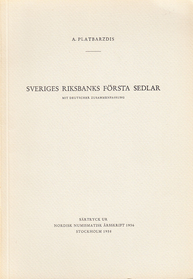 Sveriges riksbanks första sedlar [Transportsedlarna 1701-1726]. Mit Deutscher Zusammenfassung.