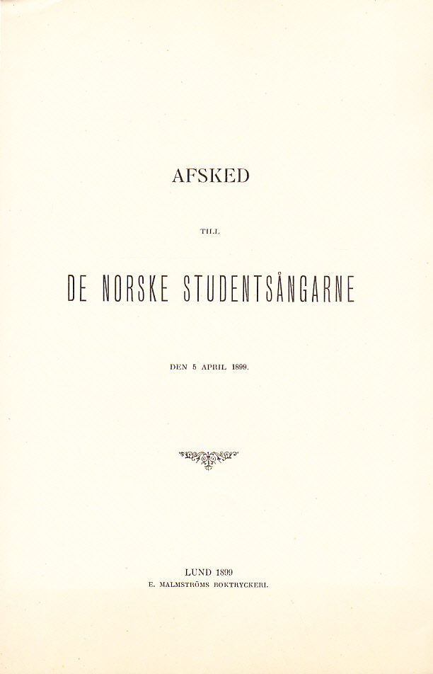 Lund, E. Malmströms Boktryckeri, 1899. 4:o. (3) s. Vikt ark. Välhållet exemplar.