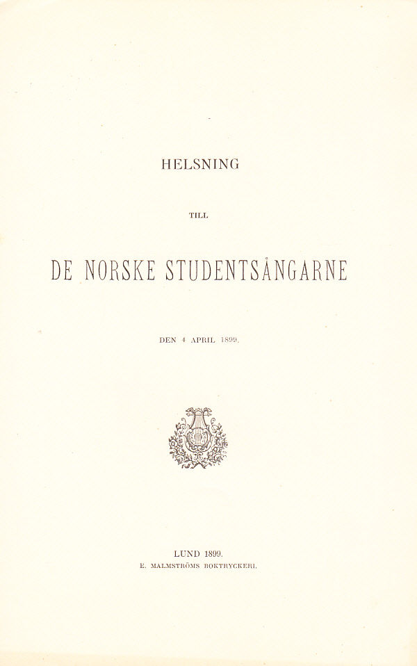 Lund, E. Malmströms Boktryckeri, 1899. 8:o. (3) s. Vikt ark. Välhållet exemplar.