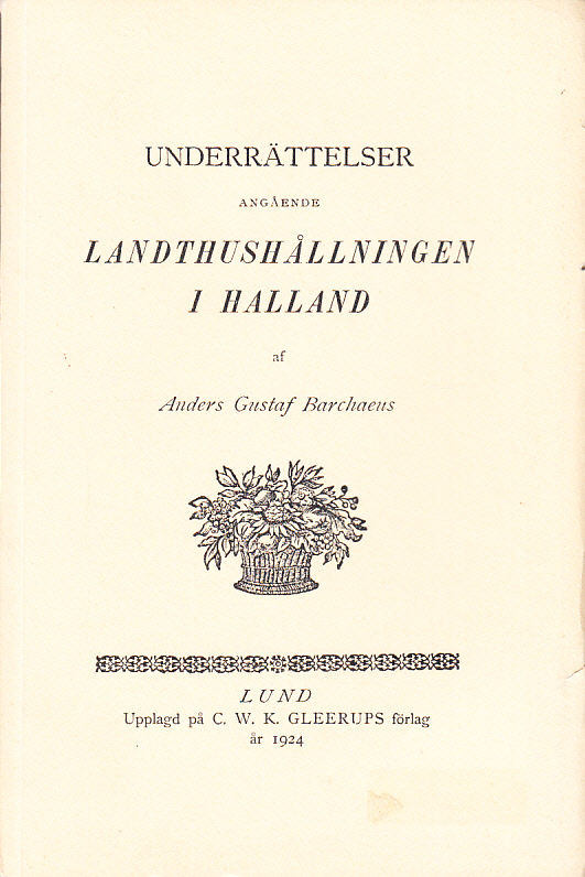 Underrättelser angående landthushållningen i Halland, samlade under en resa, som, efter höglofl. Kongl. Wetenskaps-Academiens instruction, anträddes ifrån Stockholm den 26 Jun. 1773, af Anders Gustaf Barchaeus.