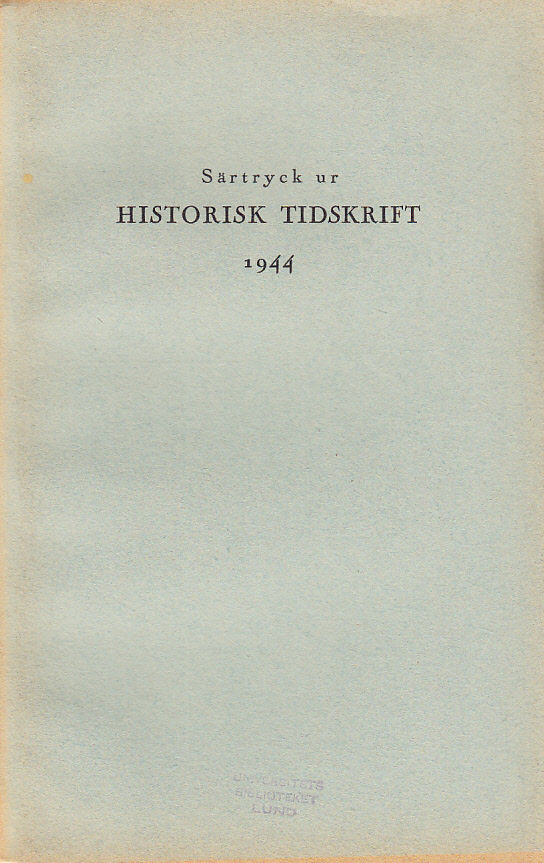 Särtryck ur ‘Historisk Tidskrift 1944’. Artikeln undertecknad ‘E. Walberg’.
