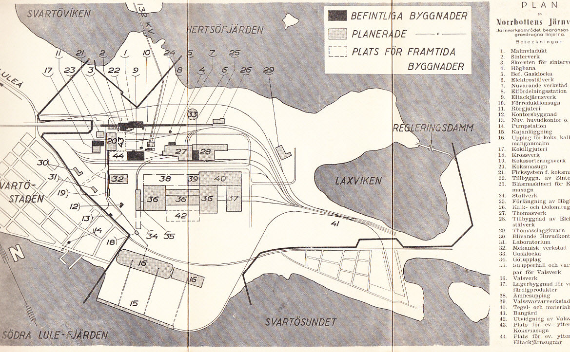 Boden, Norrländska Soc.-Dem., 1947. 8:o. Vikt något solkig folder (185x315 mm) med ‘Plan av Norrbottens Järnverk ...’ på insidan.