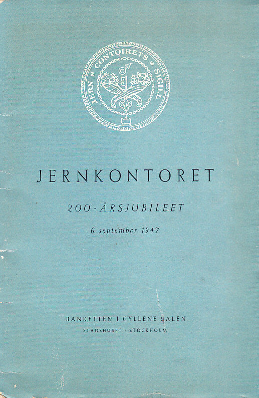 Jernkontoret. 200-årsjubileet 6 september 1947. Banketten i Gyllene Salen, Stadshuset, Stockholm [= omslagstitel].