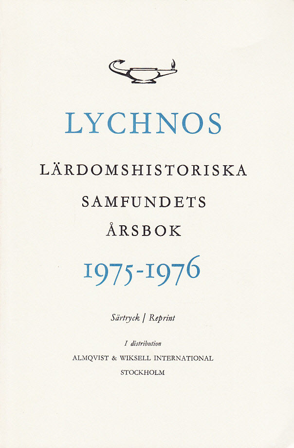 Särtryck ur ‘Lychnos. Lärdomshistoriska samfundets årsbok ... 1975-1976’.