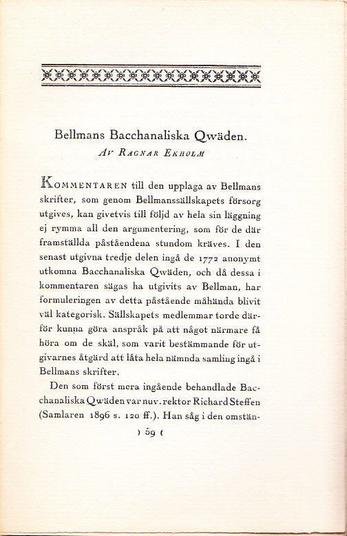 [Bellman, Carl Michael (1740-1795)] Ekholm, Ragnar.