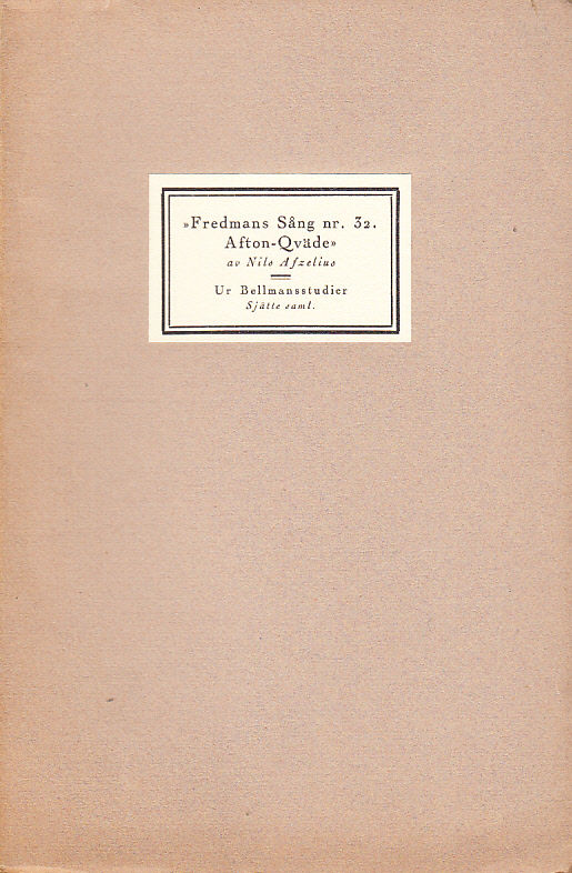 Särtryck ur ‘Bellmansstudier 6, (1934). Sven Cederblad (1890-1956), litteraturvetare, vars främsta insats var hans arbeten om Erik Johan Stagnelius, som avhandlingen ‘Studier i Stagnelii romantik’ (1923) och biografin ‘Stagnelius och hans omgivning’ (1936). Han har även skrivit om poeter som Thomas Thorild, Esaias Tegnér, Erik Sjöberg och Gustaf Fröding. Han bidrog också till Studentföreningen Verdandis småskrifter och tidskriften Samlaren.