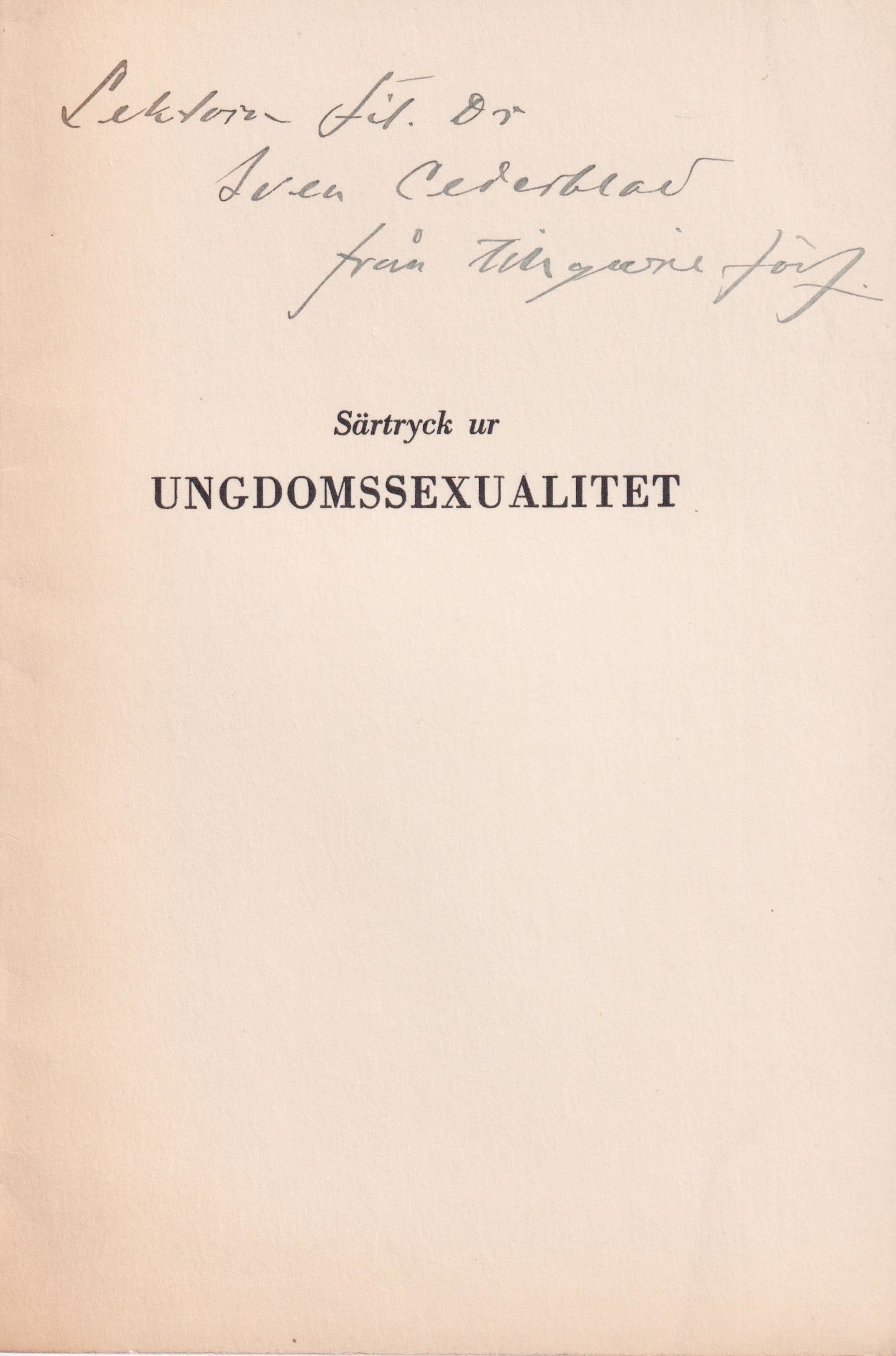 Marginalnoteringar i blyerts förekommer. Särtryck ur ‘Ungdomssexualitet’.