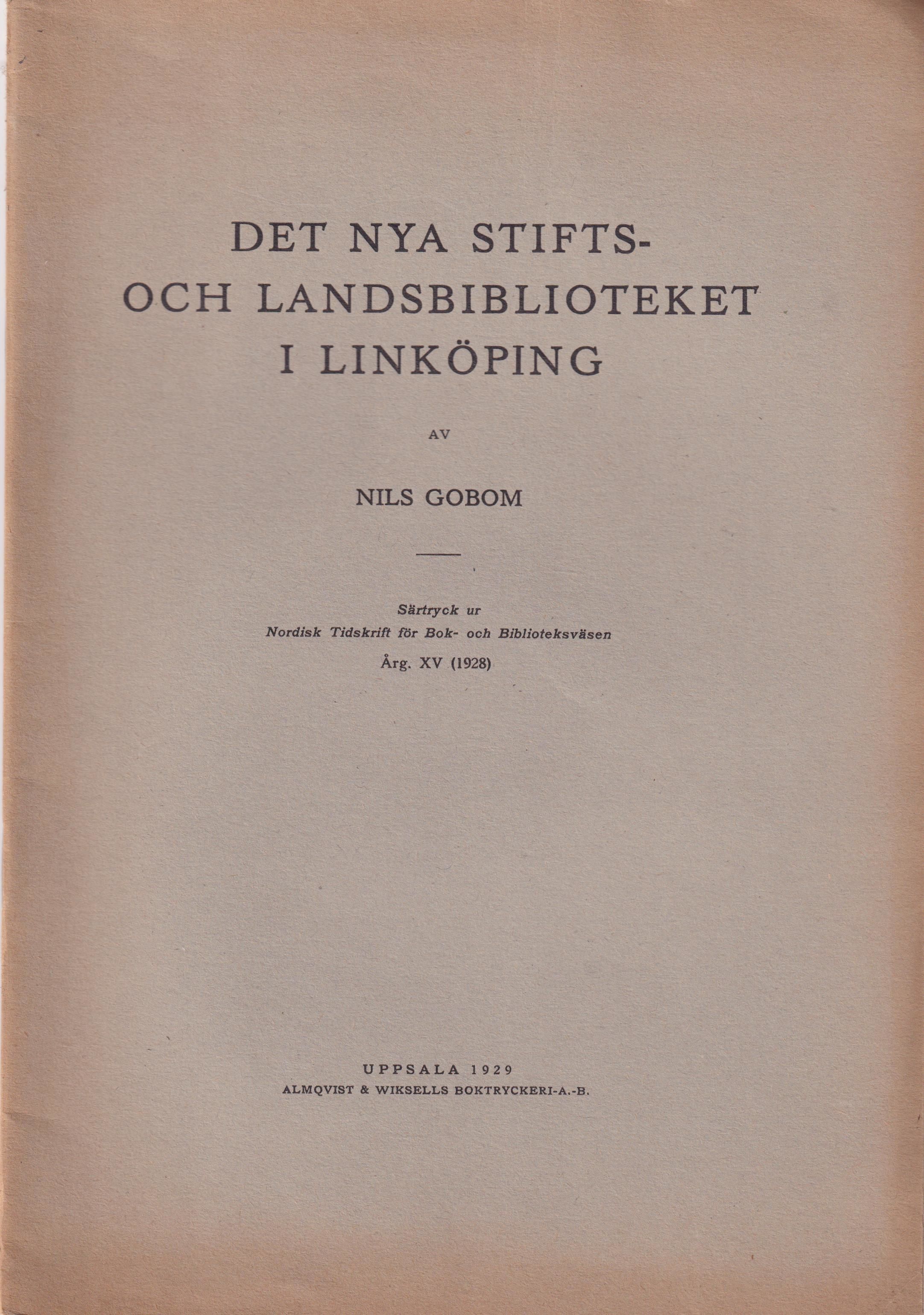 Särtryck ur ‘Nordisk Tidskrift för Bok- och Biblioteksväsen. Årg. 15 (1928)’.