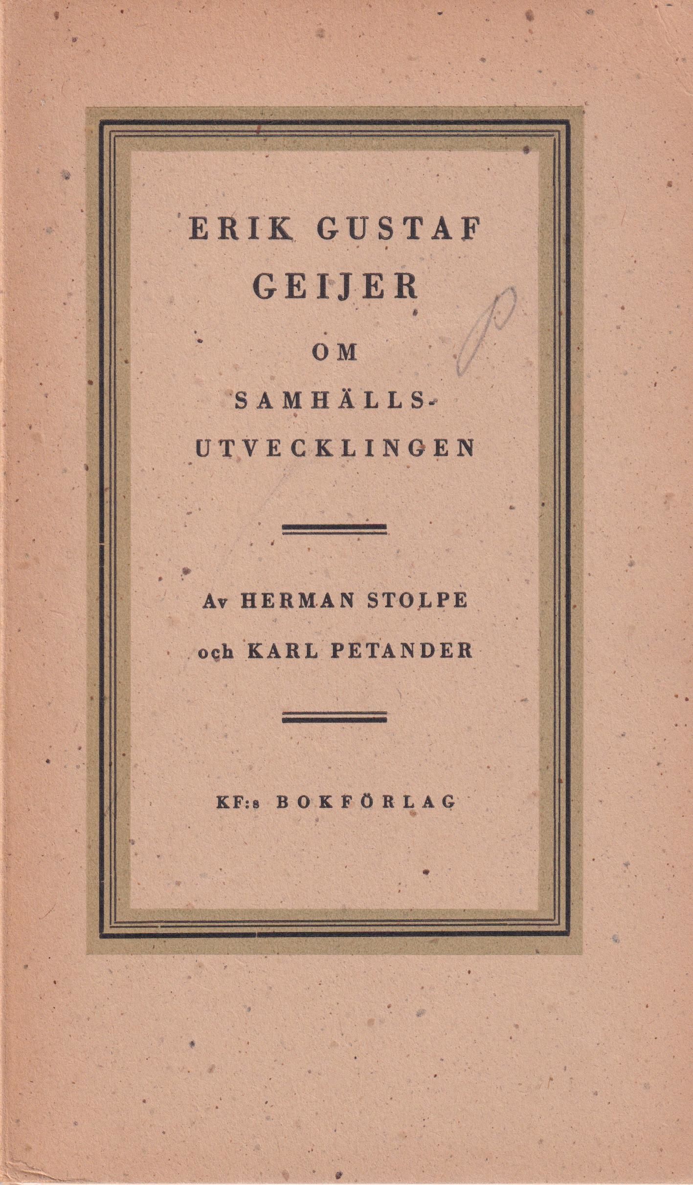 Innehåll: Förord; Erik Gustaf Geijer och den kooperativa tanken, av Herman Stolpe; Erik Gustaf Geijer om universalhistorien och samhällsutvecklingen, av Karl Petander.