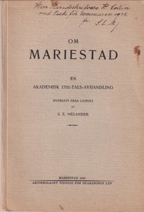 Om Mariestad. En akademisk 1700-tals-avhandling. Översatt från latinet av S.E Melander.