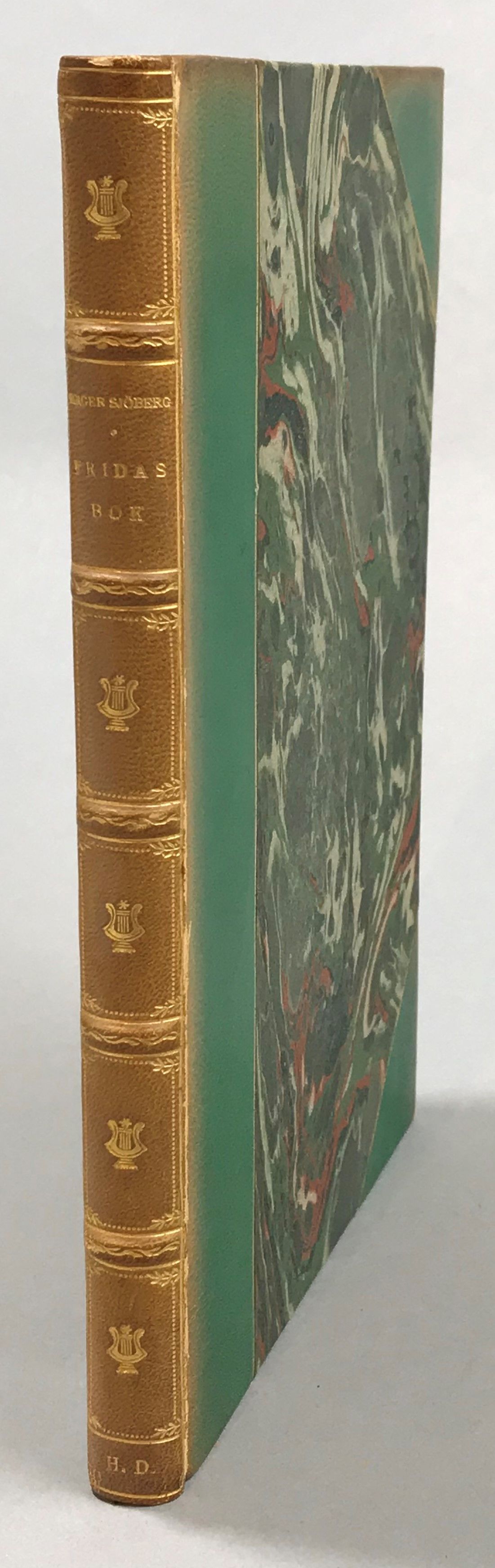Stockholm, Centraltryckeriet, 1923. 8:o. xij, 100 s. Grönt halvskinnband (Knut Hässler, Sthlm) med fem upphöjda bind, ryggtitel och -dekor i guld, marmorerat pärmpapper, övre guldsnitt, övriga snitt endast putsade. Båda omslagen medbundna. Solblekt och något skavd rygg.