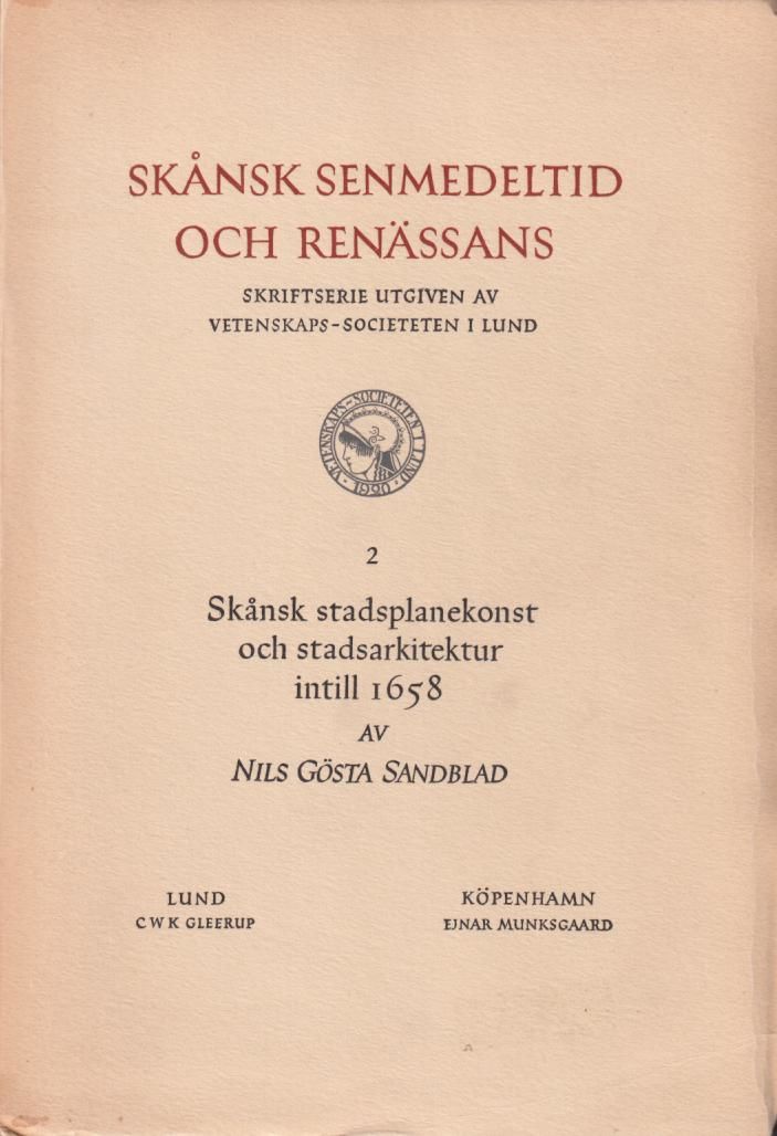 Skånsk stadsplanekonst och stadsarkitektur intill 1658. With a summary in English. [Utg. av] Vetenskaps-Sociteten i Lund [gm] CWK Gleerup & Ejnar Munksgaard.
