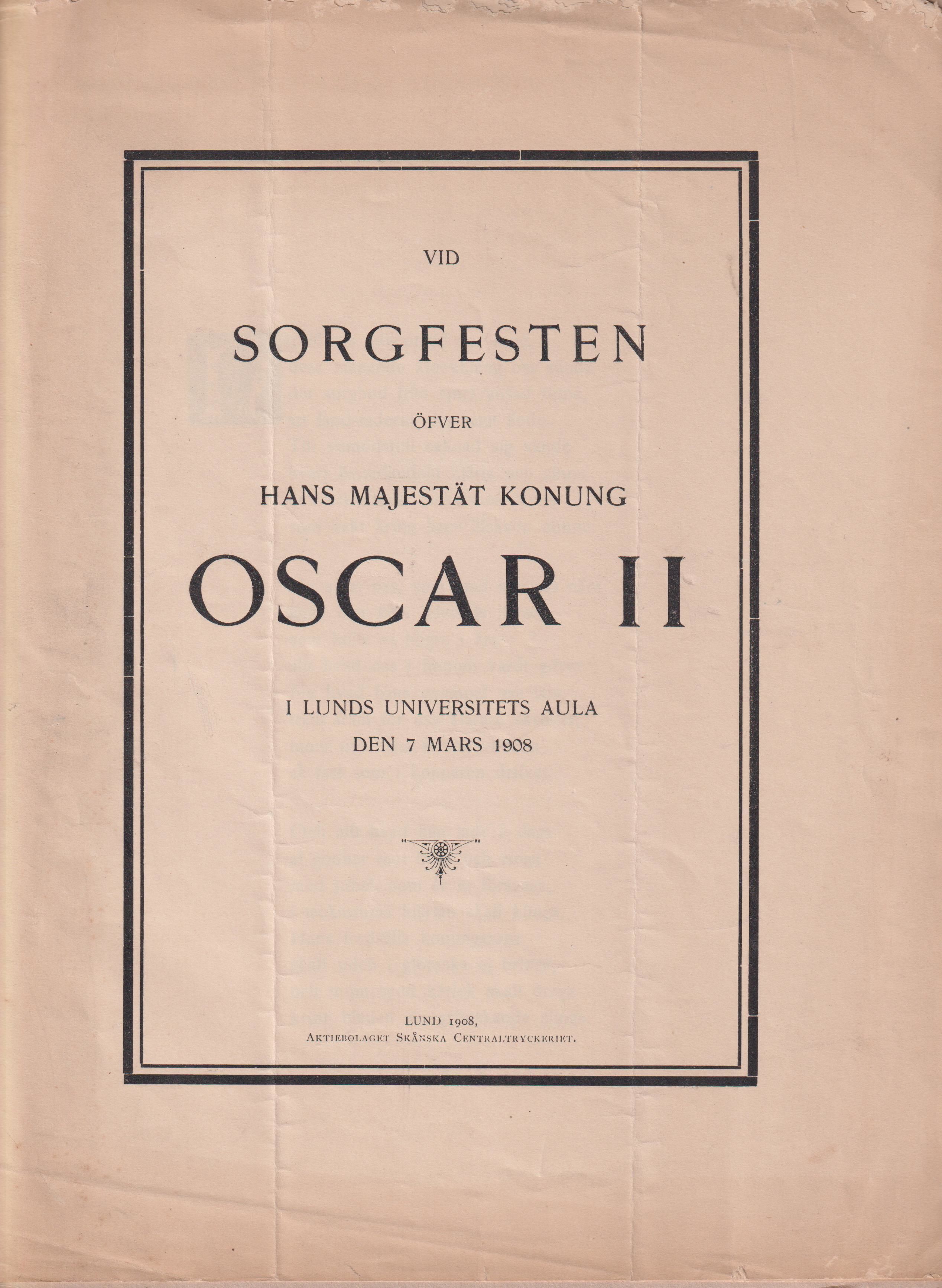 Vid sorgfesten öfver Hans Majestät konung Oscar II i Lunds universitets aula den 7 mars 1908.
