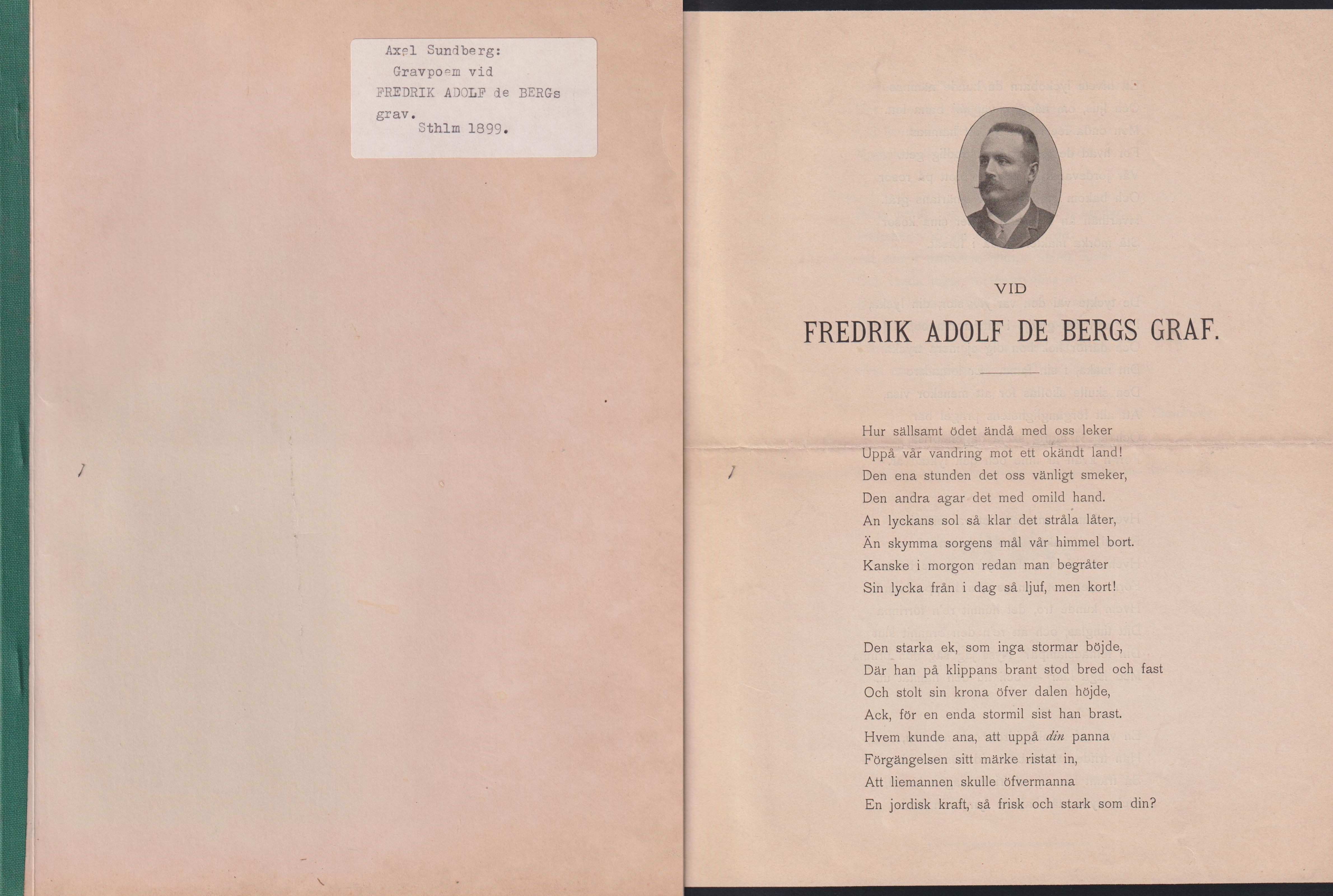 Vid Fredrik Adolf De Bergs graf [= rubrik].