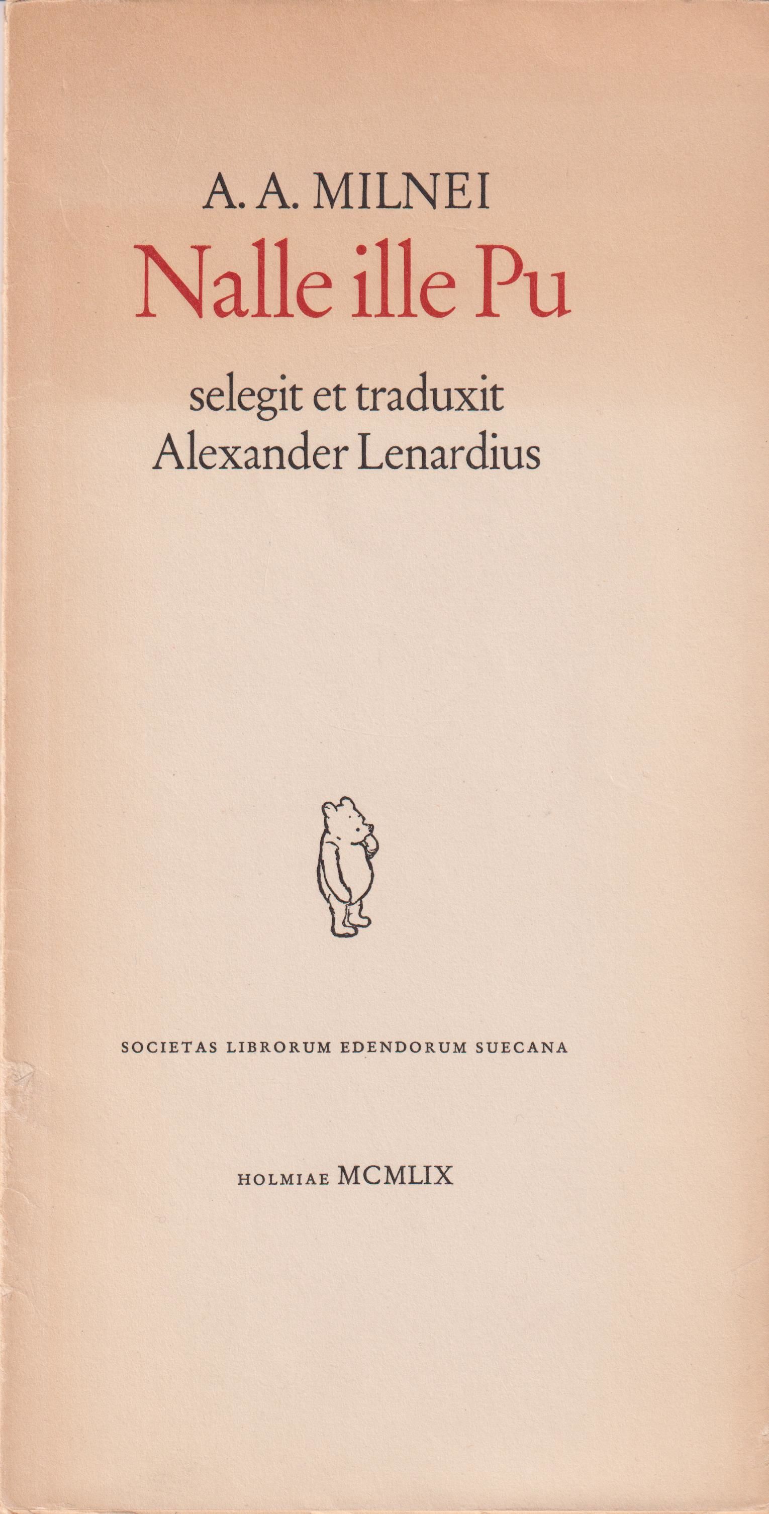 Nalle ille Pu selegit et traduxit Alexander Lenardius [= omslagstitel].