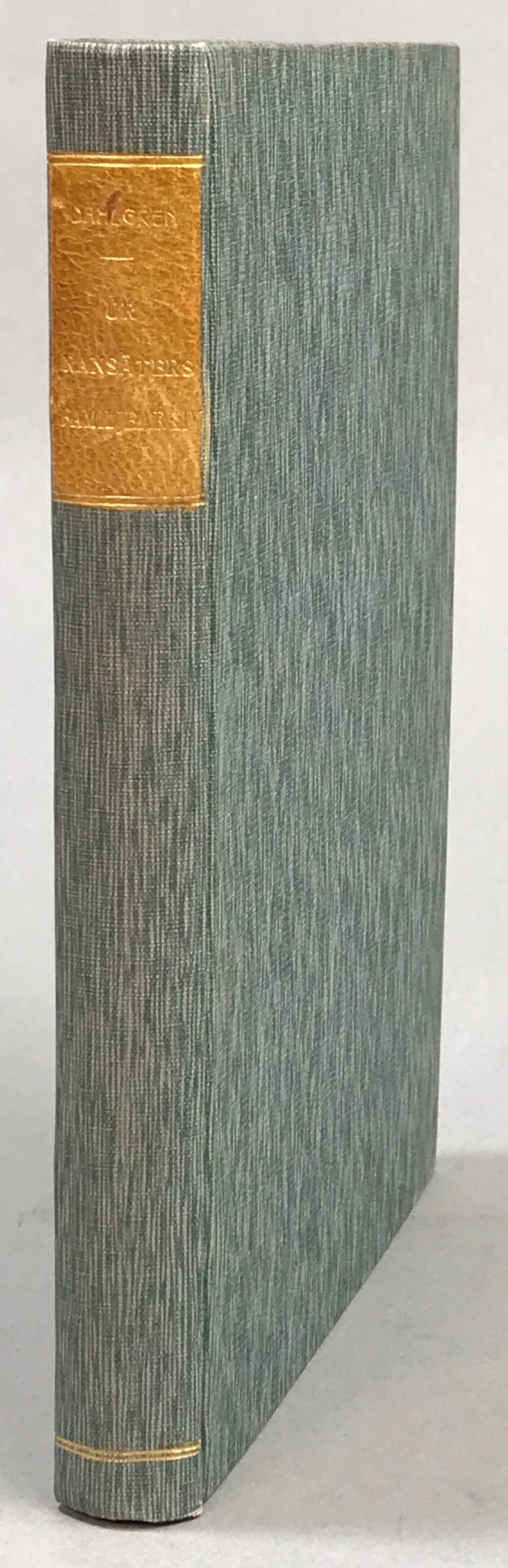 Uppsala, Almqvist & Wiksells Boktryckeri-Aktiebolag, 1905. 8:o. Frontespis, (8), 204 s., (5) pl.-bl. Illustrerad. Blåmelerat klotband med brun ryggtiteletikett, sprängda snitt. Främre omslag [!] medbundet. Bokbindaren har bundit med fel främre omslag, här sitter istället omslaget till patron Carl, av samma författare. Namnstämpel på halvtitelbladet.