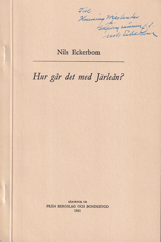 Särtryck ur ‘Från bergslag och bondebygd, 1961’.