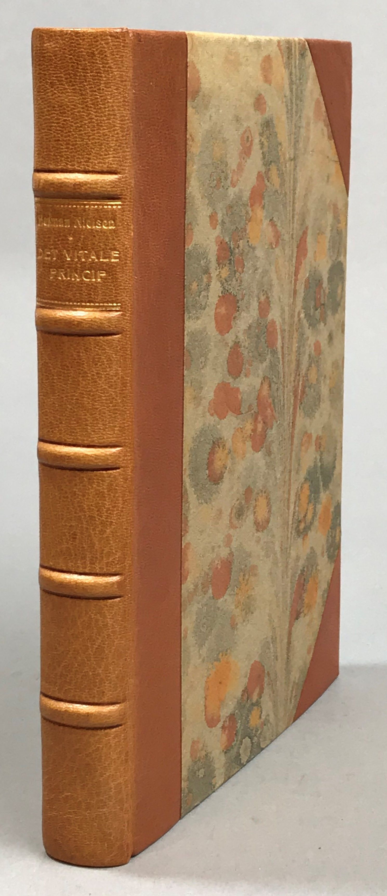 København, Store Nordiske Videnskabsboghandel, 1947. 8:o. 255 s., (1) pl.-bl. Illustrerad. Brunt halvskinnband (Gerda Malmgren, [Malmö]) med fem upphöjda bind, ryggtitel i guld. Främre omslag medbundet. Välhållet exemplar. Ägarnotering ‘Einar Ljungberg, 1950.’ på halvtitelbladet.