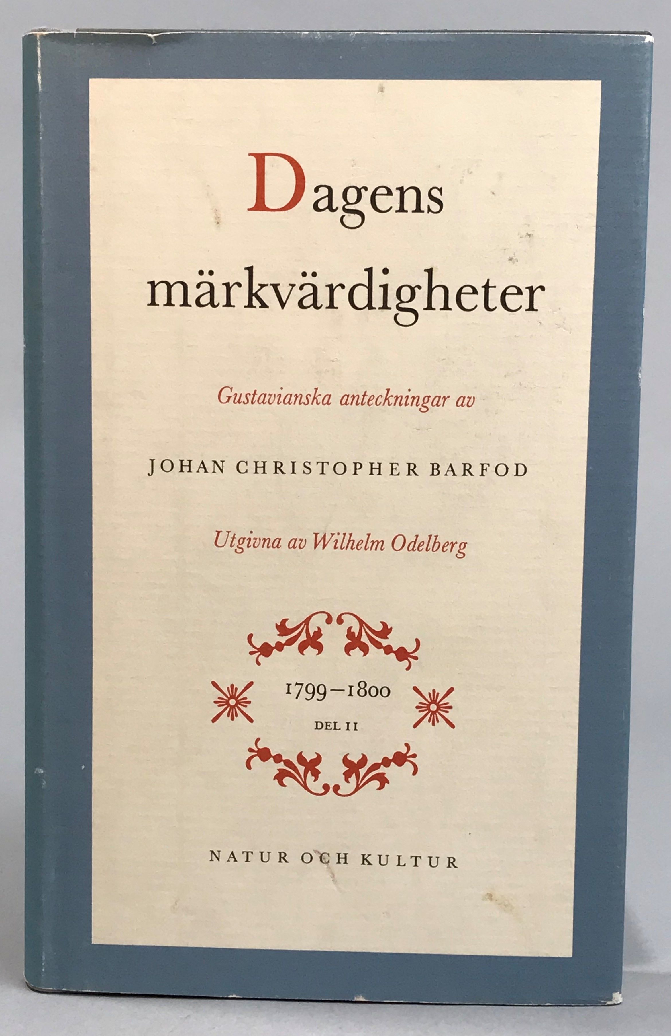 Dagens märkvärdigheter. Gustavianska anteckningar. II. 1799-1800. Utgivna av Wilhelm Odelberg. [gm] Natur och Kultur.