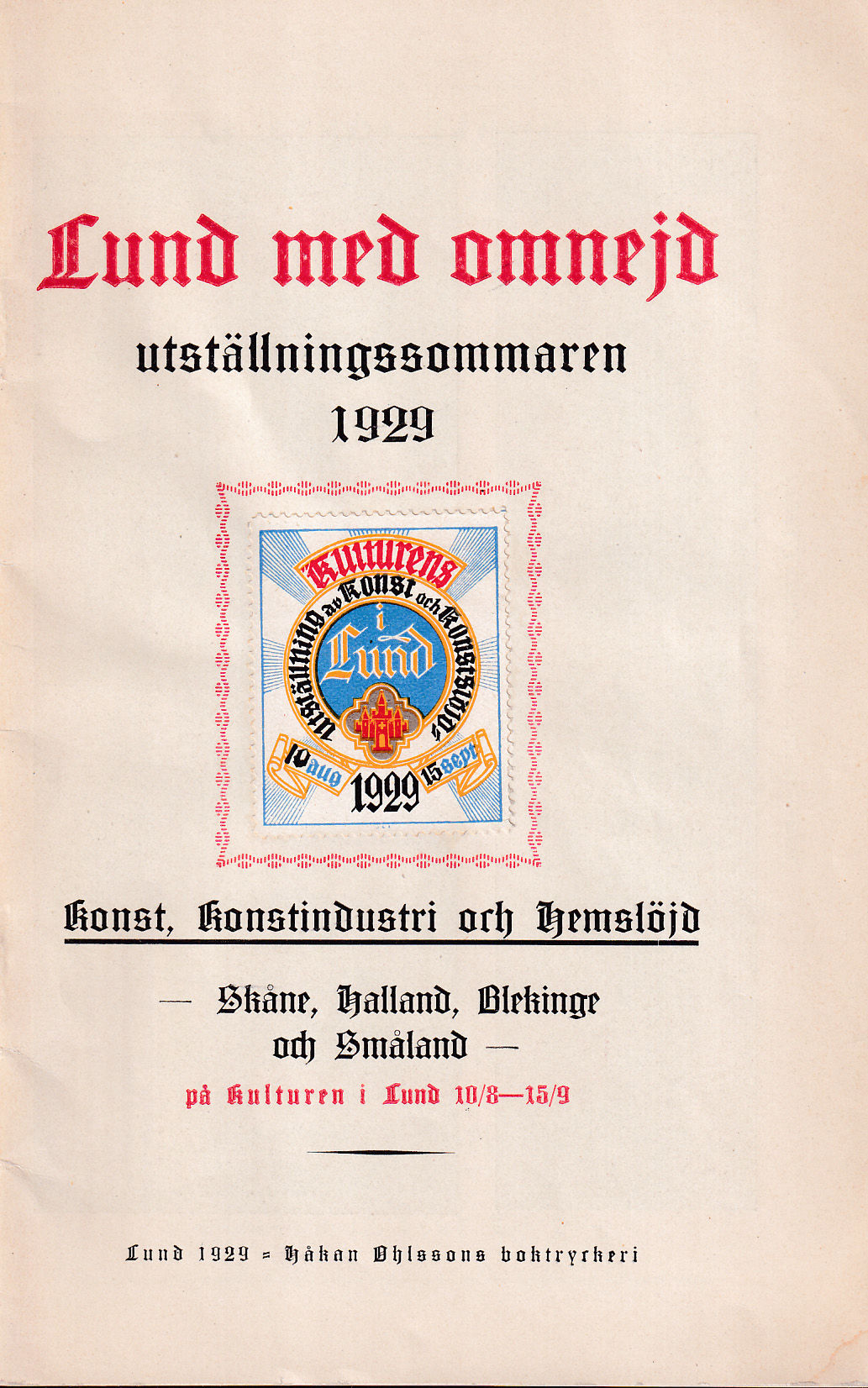 Lund med omnejd utställningssommaren 1929. Konst, konstindustri och hemslöjd - Skåne, Halland, Blekinge och Småland - på Kulturen i Lund 10/8 - 15/9 [= omslagstitel].