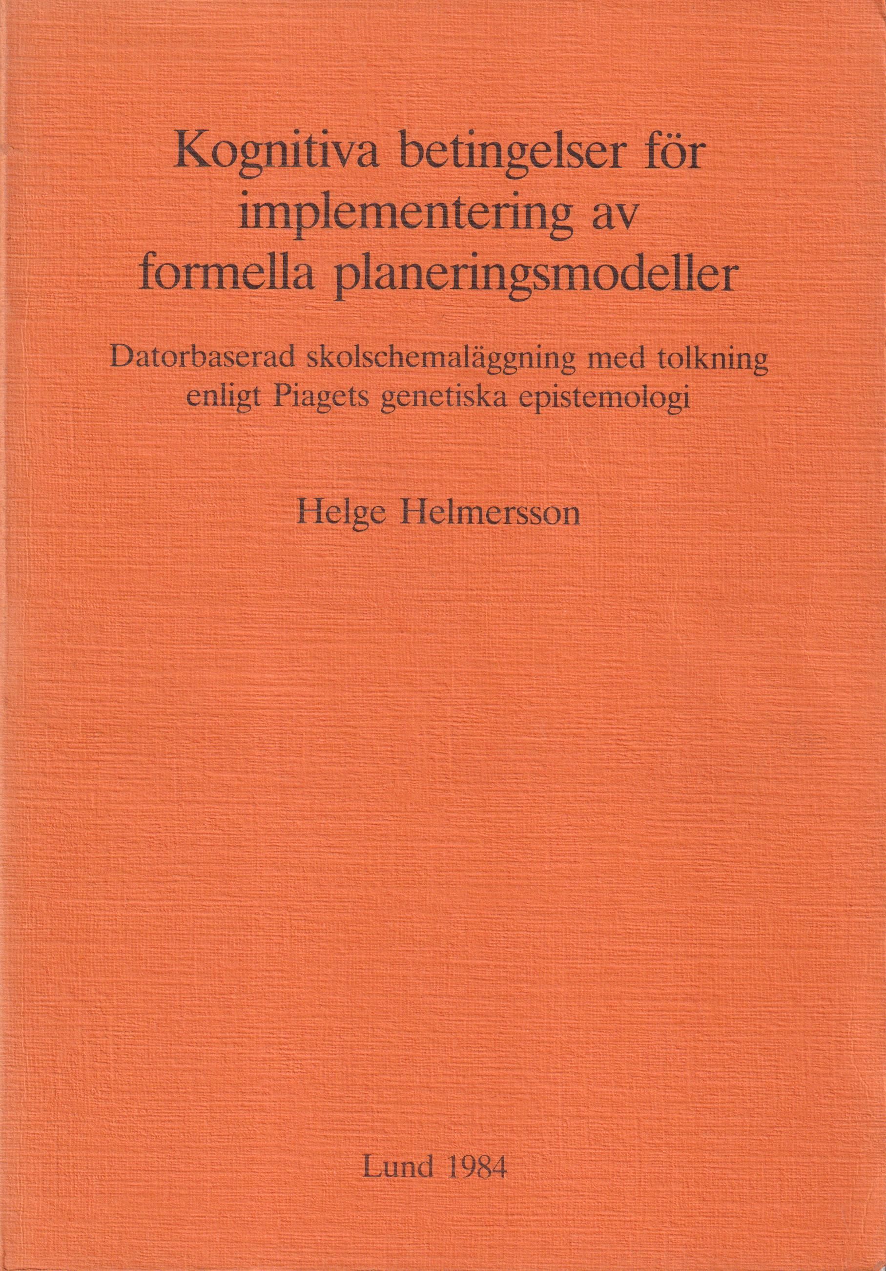 Kognitiva betingelser för implementering av formella planeringsmodeller. Datorbaserad skolschemaläggning med tolkning enligt Piagets genetiska epistemologi.
