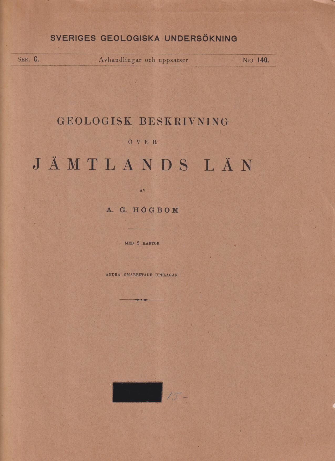 Geologisk beskrivning över Jämtlands län av A.G. Högbom. Med 2 kartor. Andra omarbetade upplagan.