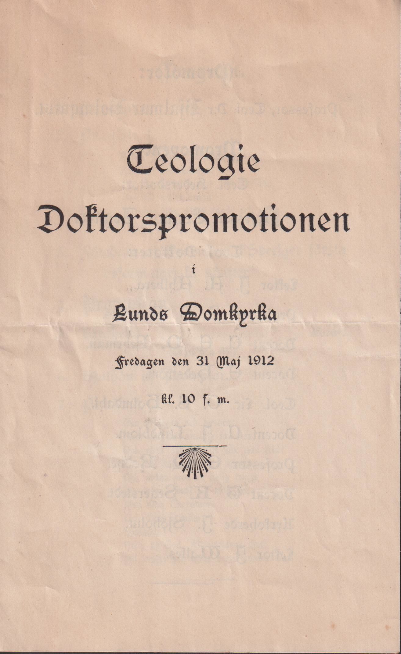 Teologie Doktorspromotionen i Lunds Domkyrka fredagen den 31 maj 1912 kl. 10 f.m.