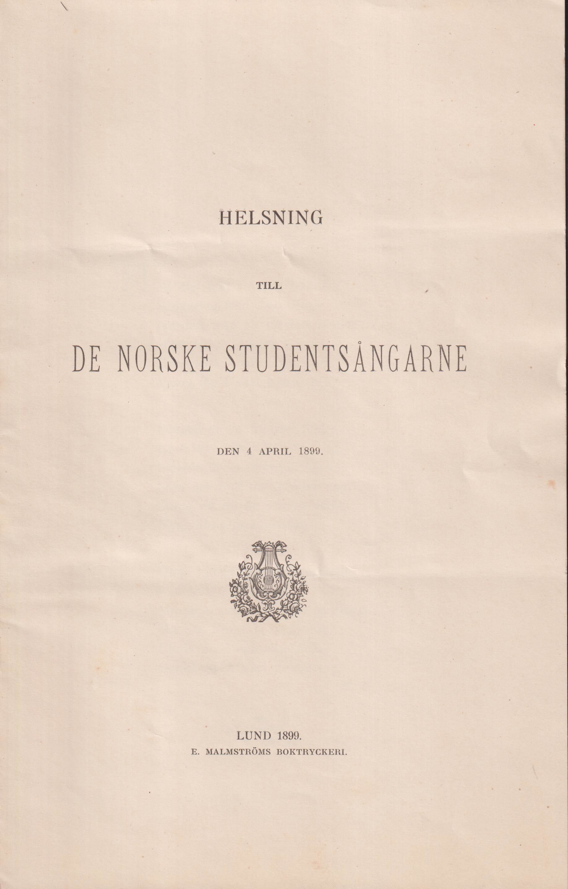 Lund, E. Malmströms Boktryckeri, 1899. 8:o. (3) s. Vikt ark. Välhållet exemplar. Antydan till tvärgående vikmärke.