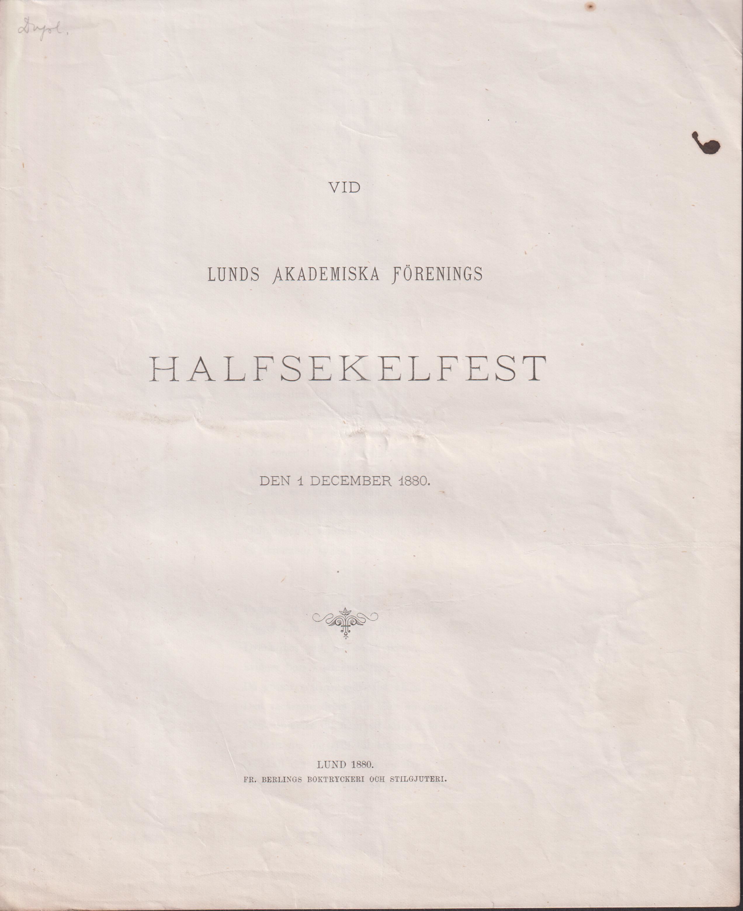 Vid Lunds Akademiska Förenings halfsekelfest den 1 december 1880.