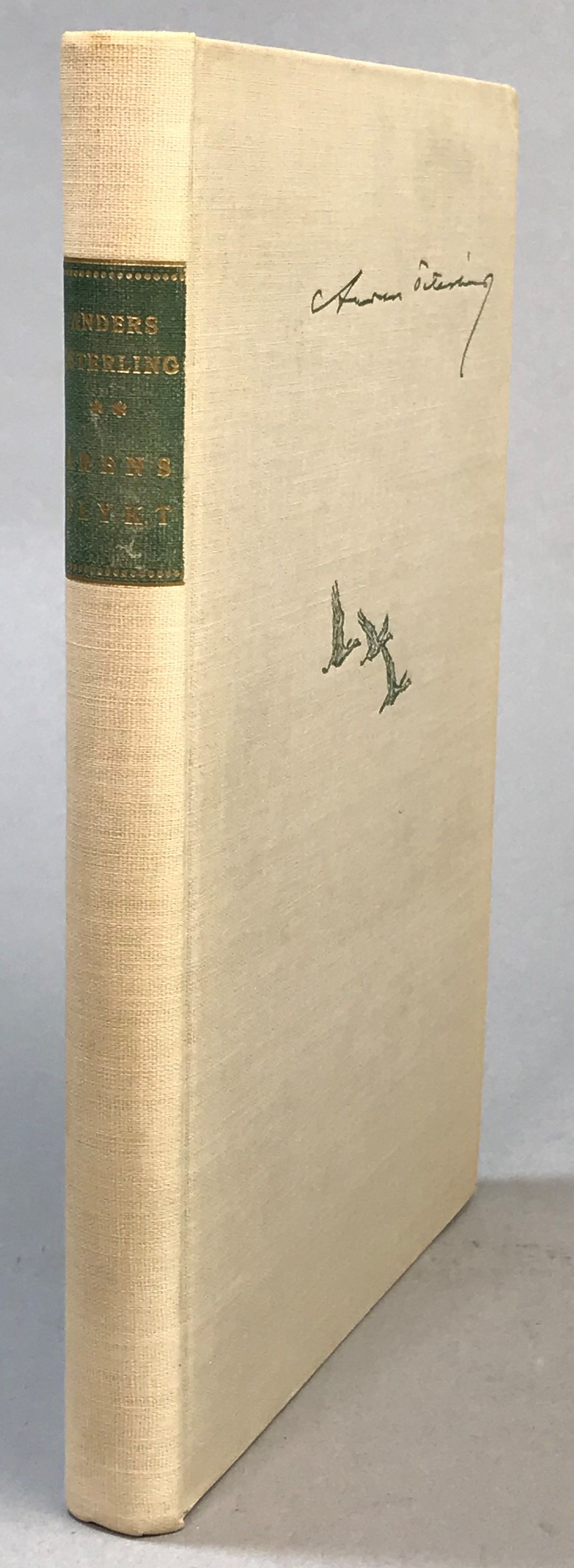 Stockholm, Alb. Bonniers boktryckeri, 1947. 8:o. 169, (6) s. Förlagets grå klotband med grönt ryggtitelfält samt grön pärmdekor och övre snitt. Löst bilagt visitkort med handskriven hälsning ‘Hjärtliga lyckönskningar / tant Elsa [Viestam] med familj’. Ägarnotering ‘Ulf Alfredson’ på försättsbladet. Ur advokat Ulf Alfredsons bibliotek.