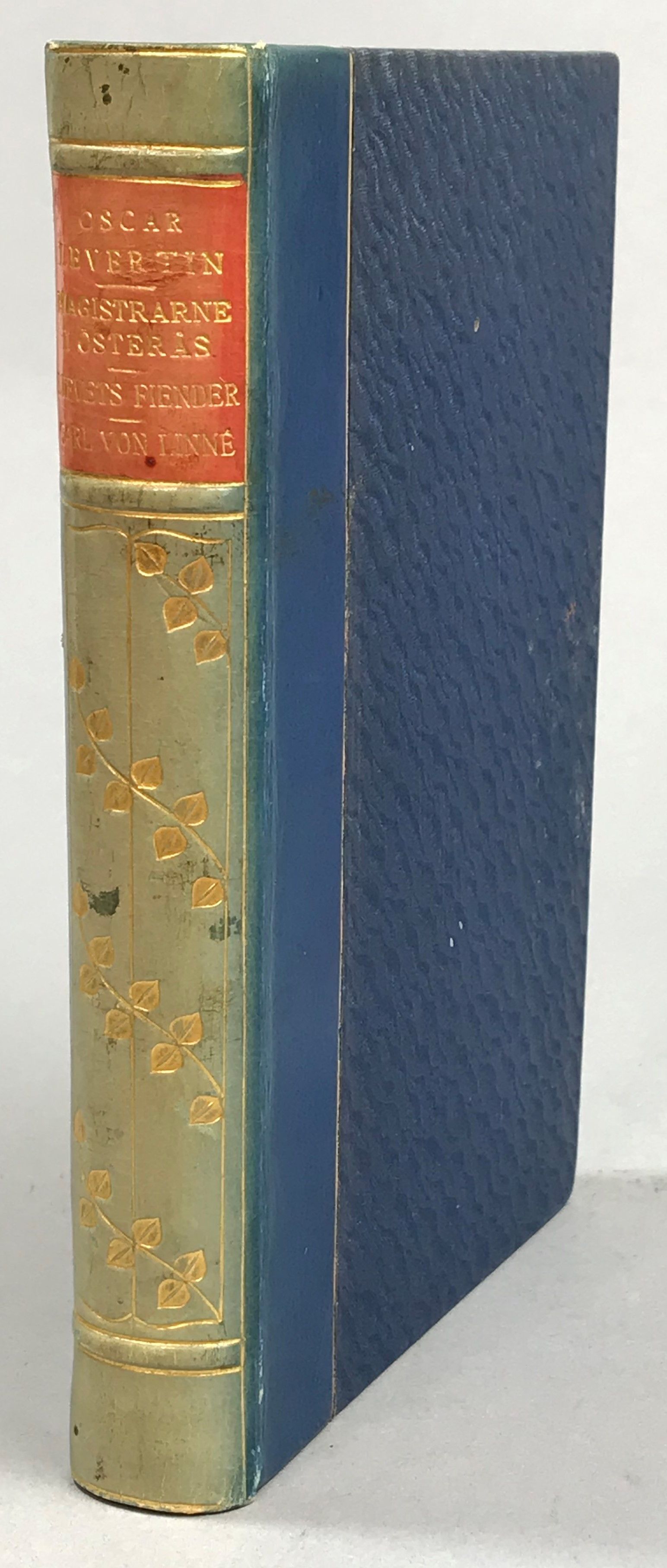 Stockholm, Alb. Bonniers Boktryckeri, 1909, 1908. 8:o. 142 s.; 152 s.; s. (3)-106, (1) s. Blått halvskinnband (G. Hedberg, Sthlm) med tre upphöjda bind, blått pärmpapper, rikt guldornerad rygg med rött ryggtitelfält. Solblekt rygg. Ägarnotering ‘Maria Lindhagen / Stockholm 1911.’ på försättsbladet, samt ‘Ulf Alfredson’ på ett annat av försättsbladen. Ur advokat Ulf Alfredsons bibliotek.