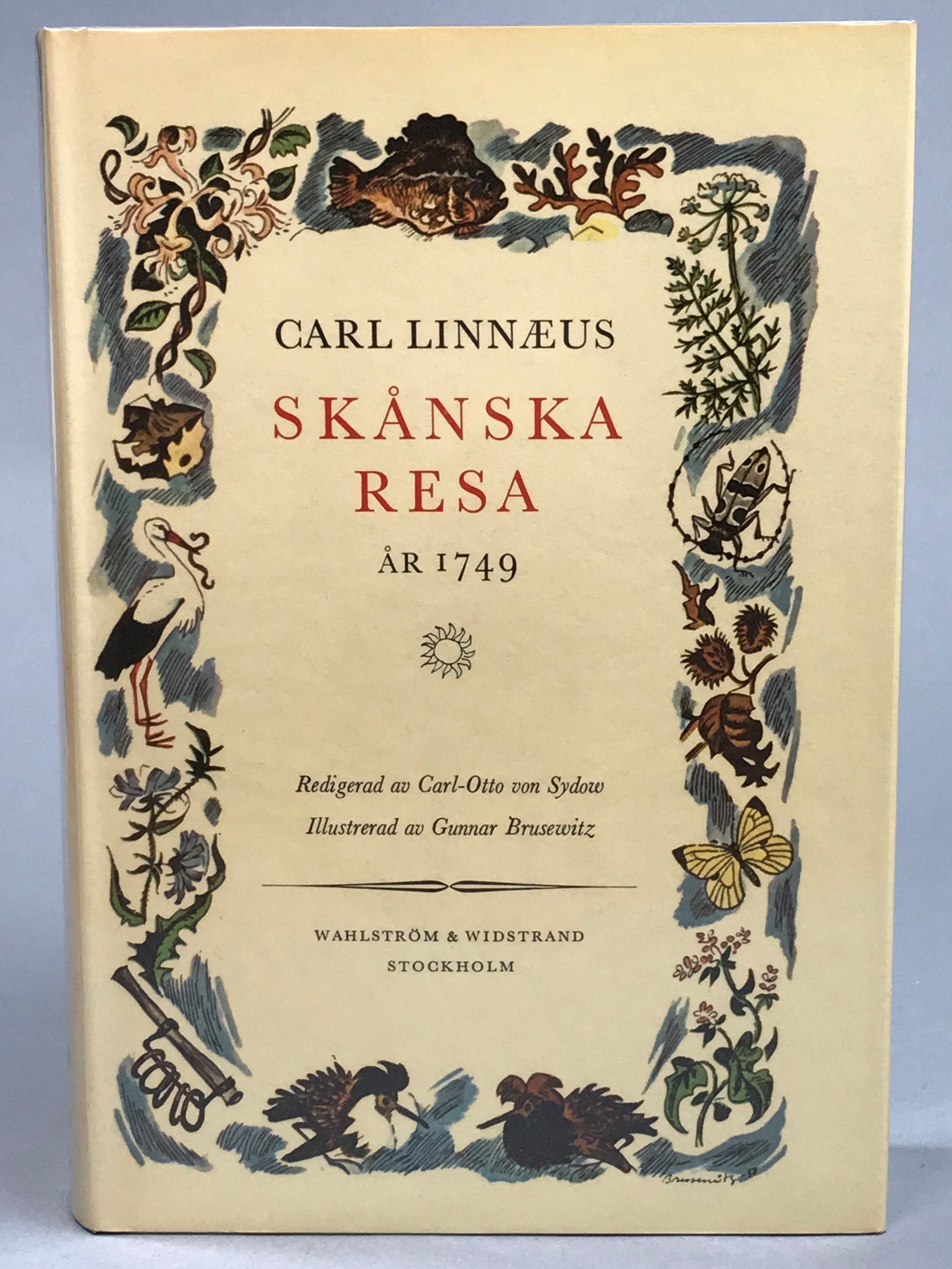 Carl Linnaei Skånska resa på höga överhetens befallning förrättad år 1749 med rön och anmärkningar uti ekonomien, naturalier, antikviteter, seder, levnadssätt. Med tillhörige figurer. Redigerad av Carl-Otto von Sydow. Illustrerad av Gunnar Brusewitz. [Utg. av] Wahlström & Widstrand.