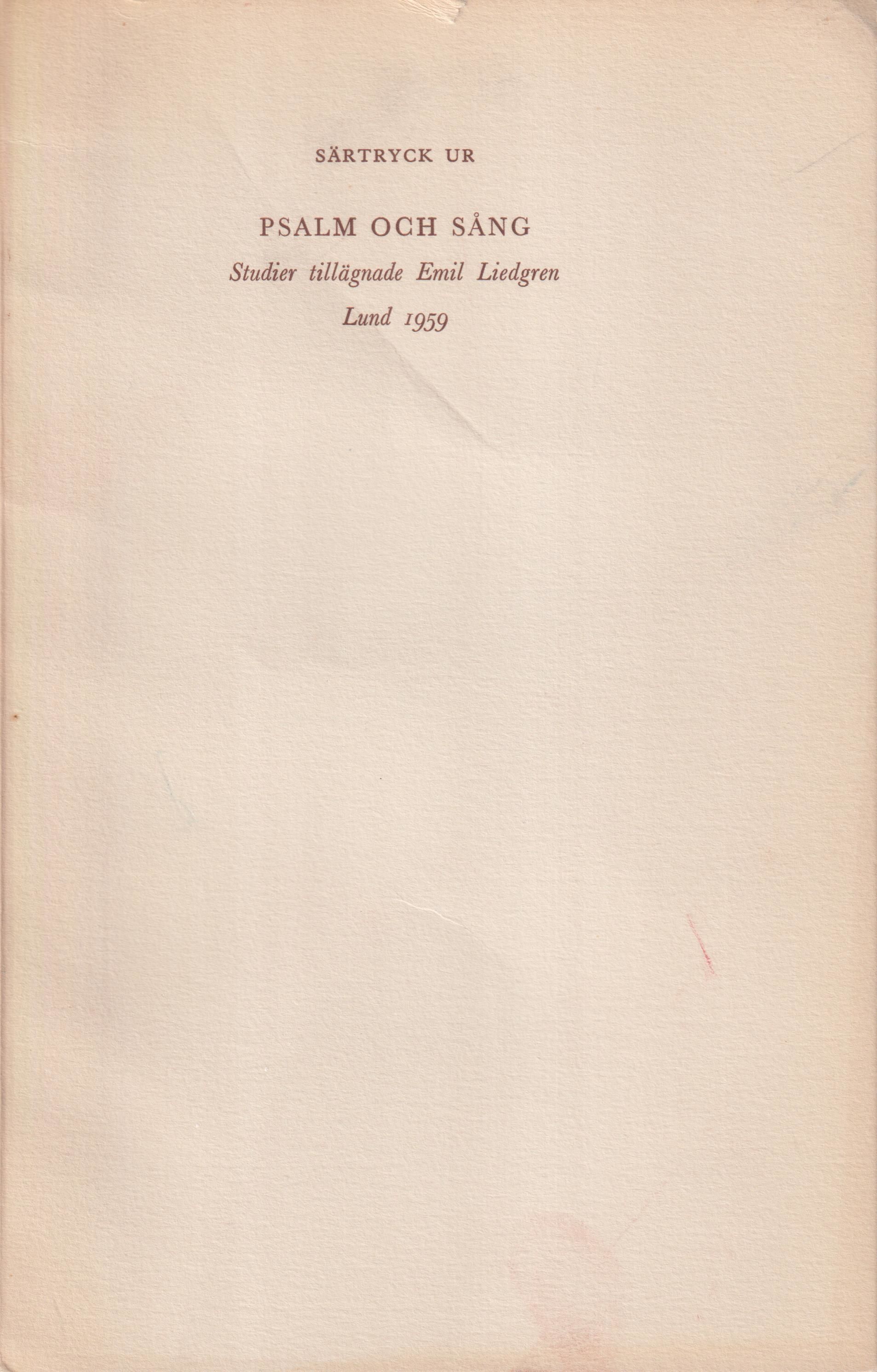Särtryck ur 'Psalm och sång. Studier tillägnade Emil Liedgren. Lund 1959'.