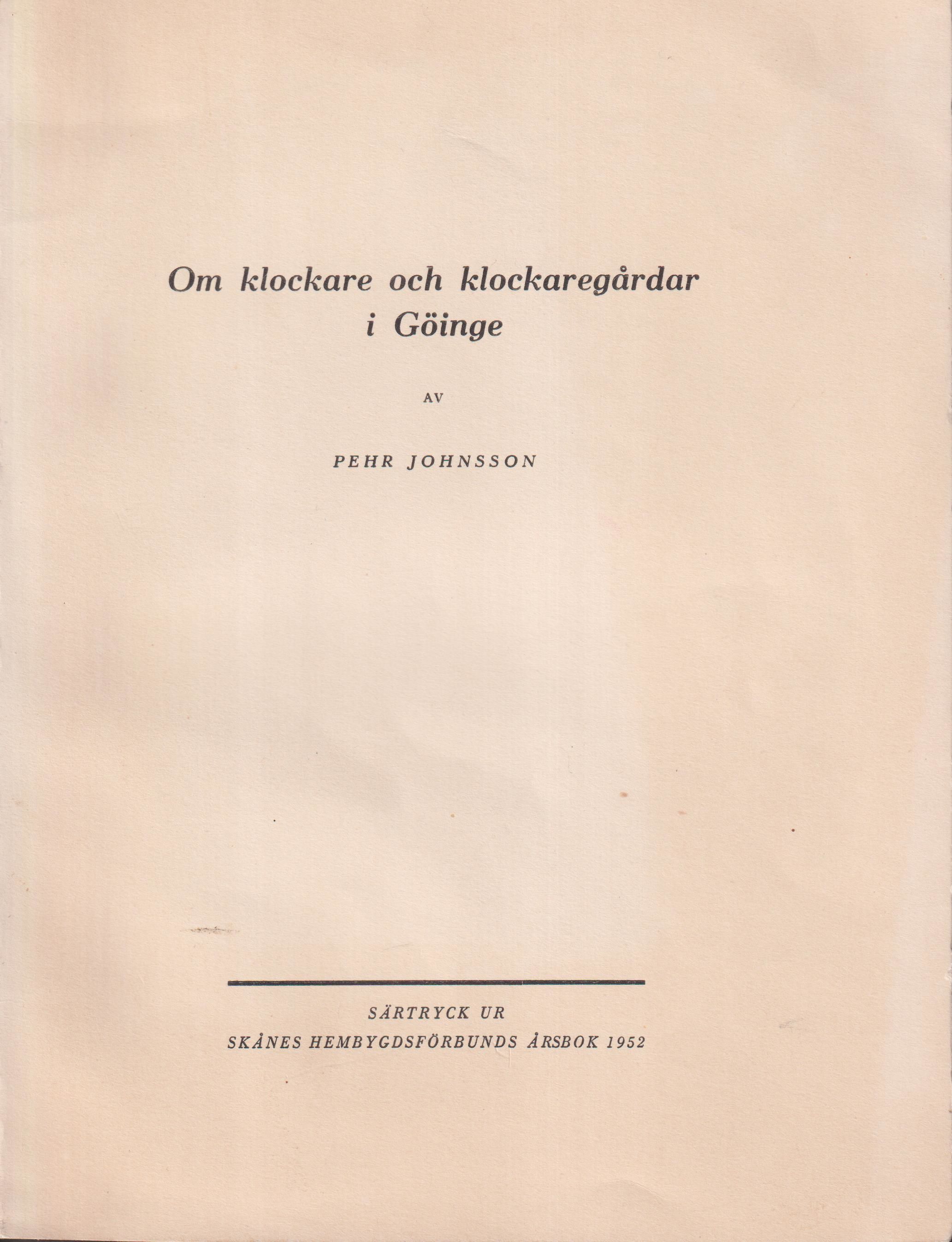 Om klockare och klockaregårdar i Göinge [= rubrik].