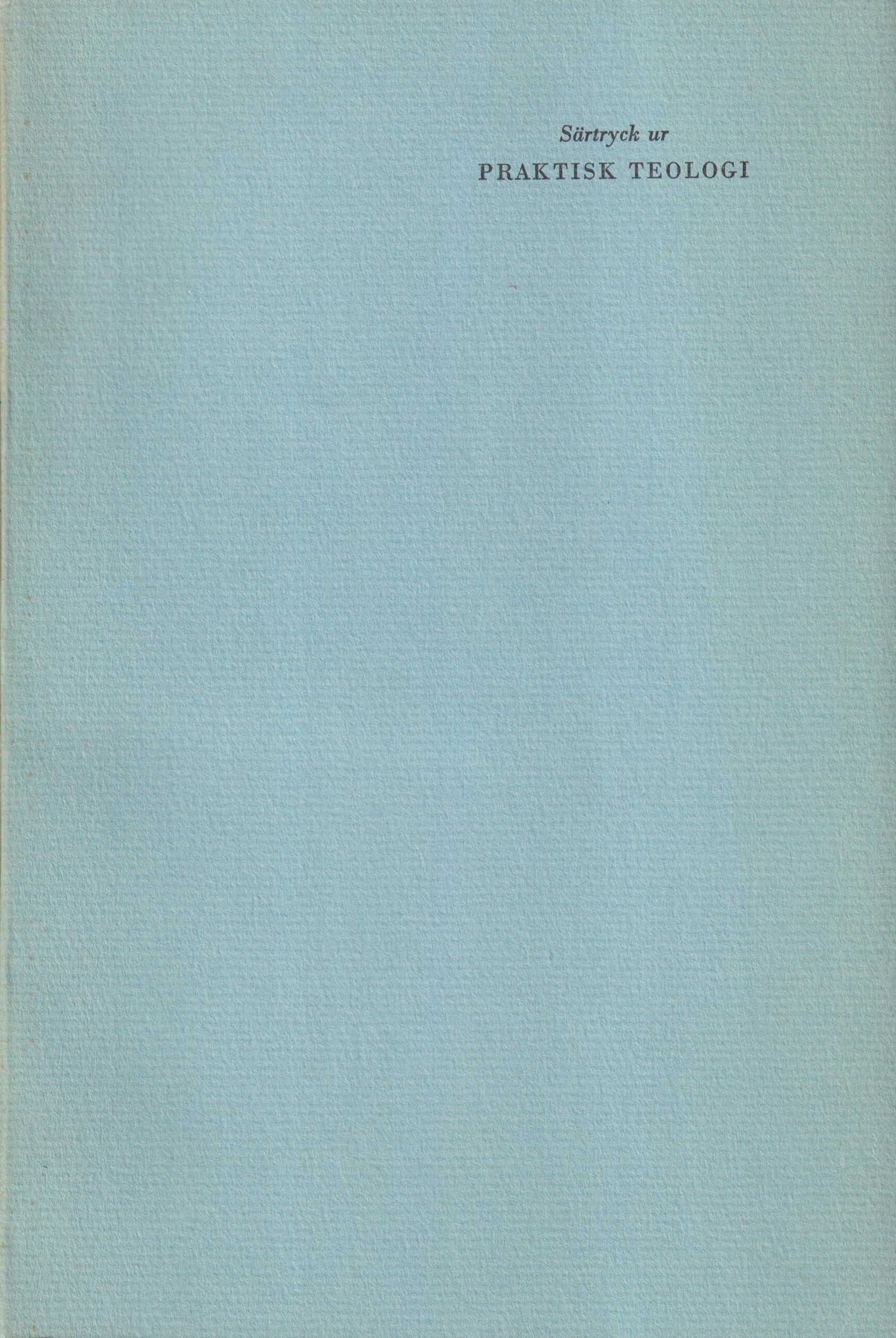 Ryggen med handskriven titel. Särtryck ur ‘Praktisk teologi. [En handbok i kyrkans organisation och verksamhetsformer utg. av Sven Kjöllerström (1959)]’.