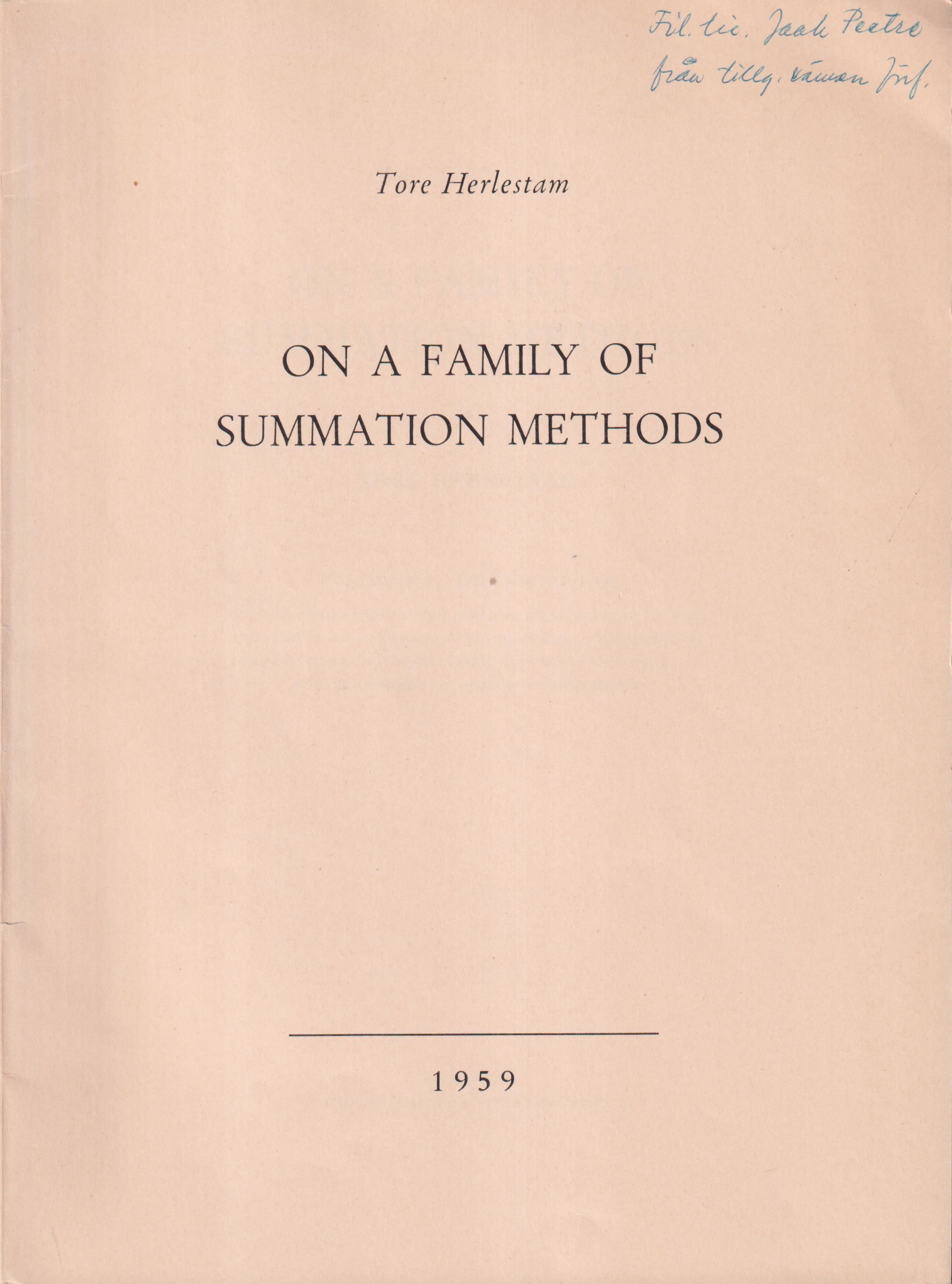 Lunds universitets årsskrift. N.F. Avd. 2. Bd 55, Nr 11-12. / Kungl. Fysiografiska sällskapets [i Lund] handlingar. N.F. Bd 70, Nr 11-12. Författarens doktorsavhandling, ventilerad i Göteborg 25/5 1959. Jaak Peetre (1935-2019), född i Tallinn, död i Lund. Matematiker, filosofie licentiat vid Lunds universitet 1958 och professor i matematik där 1963–1988.