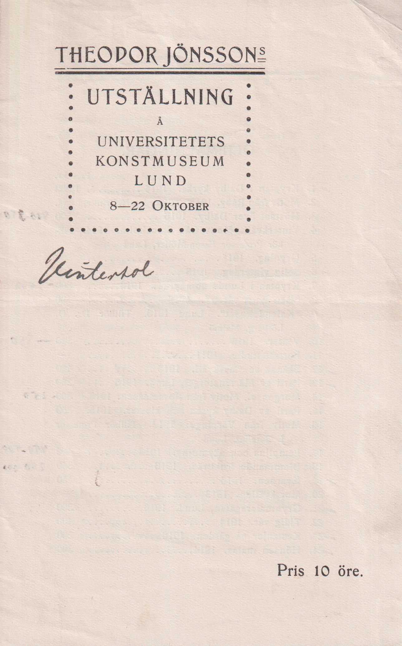 Theodor Jönssons utställning å Universitetets konstmuseum, Lund, 8-22 okt.