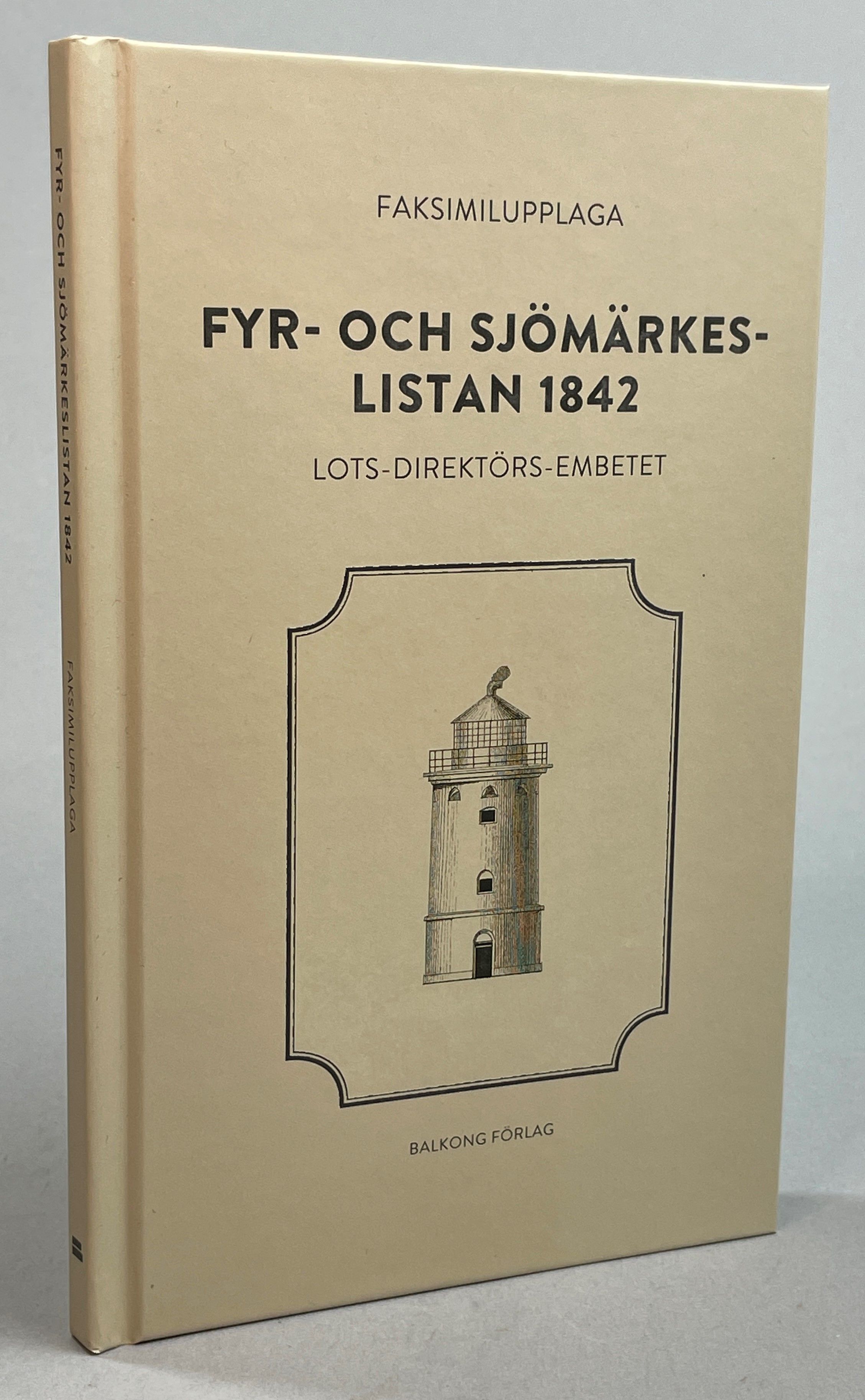 Pärmtitel ‘Fyr- och sjömärkeslistan 1842. Faksimilupplaga’. Sveriges första sjömärkeslista, som innehåller både fyrar och sjömärken gavs ut 1834. År 1842 gav Lots-Direktörs-Embetet, efter Kongl. Förvaltningens af Sjö-Ärendena beslut, för första gången ut en helsvensk sjömärkeslista med ovanstående titel. Boken beskriver detaljerat 26 fyrar och 121 sjömärken.