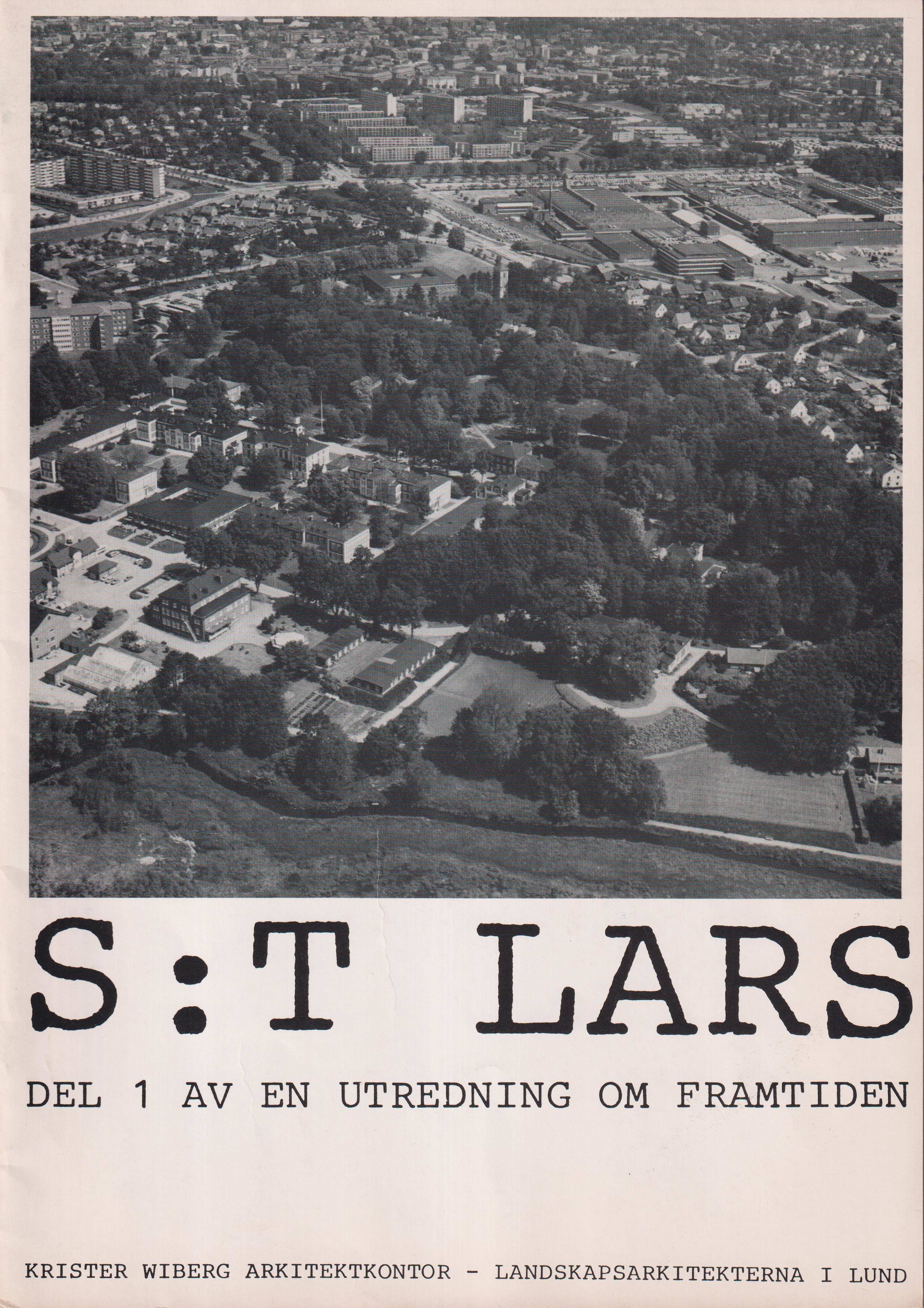 Förordet daterat ‘Lund i maj 1985’. Innehåll: Vad blir det av S:t Lars? Arealer, volymer och värden; Det händer i och omkring S:t Lars idag och imorgon; SUN i asylen; Ny väg 108; Mera bostäder i Klostergården; Lund behöver en strategi för S:t Lars-parken; S:t Lars har unika miljövärden; A. Borggården; B. Höjeå-dalen; C. Asylen och odlingarna; D. ‘Nya’ sjukhuset; Många vill vara med och dela på S:t Lars; Deltagare vid diskussionerna.